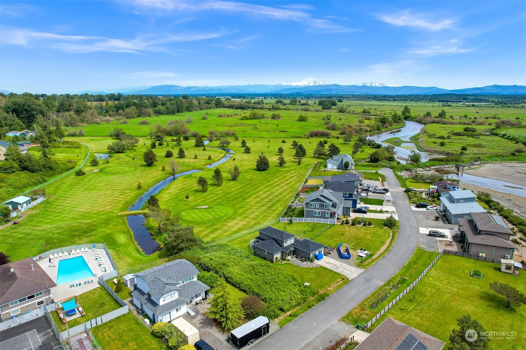 Whether you’re a first time homebuyer, or need a vacation home or a move up home this lot fits the bill. Located on the 9th hole green with a sweeping bay view and a Mt. Baker View, this lot has it all. The lot is level and clean, the power is underground with no power lines to block the views.