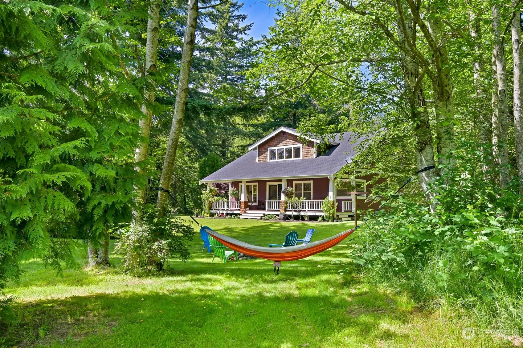 This captivating custom home on a coveted 7.72 acre gardener’s paradise will take your breath away. 17ft vaulted ceilings allow sunshine to sprawl through this open floor plan with abundant windows & gorgeous hardwood flooring. Charming French doors frame a stylish main level office, & central stairs lead to a sunlit loft with guest room potential. Timeless cherry cabinetry in both kitchen & bathrooms. Massive glass doors present your sweeping 40ft porch inspiring unending outdoor solace or entertainment. Spacious detached 24 x 40 shop with large sliding door for all hobbies with electric & 50amp. Enjoy lush landscaping, plus a private sanctuary of PNW trails w/ ancient fir trees and an acre wide meadow ready for your imagination.