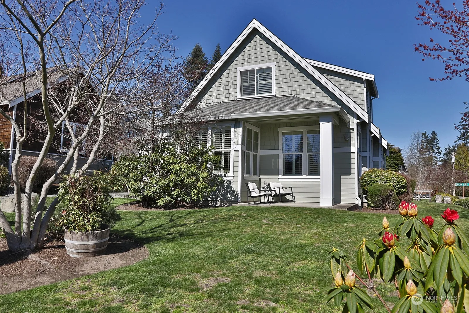 Charming Bungalow beautifully refreshed throughout w/ a view of the Bay and Cascades! Updated kitchen w/quartz countertops, painted cabinets, new appliances, & induction cooktop range. The interior is freshly painted & new carpet installed. The main living room features an open concept, refinished hardwood floors, vaulted ceilings, & picture windows w/wooden shutters. The kitchen has an island that provides extra seating at the counter and an adjacent small dining area. The main floor primary bath is updated. Upstairs, you’ll find a multifunctional loft that can be used as a media room or office space. The loft overlooks the living area & has an additional bedroom & full bath. Multiple outside seating areas, patio for relaxing & barbecuing!