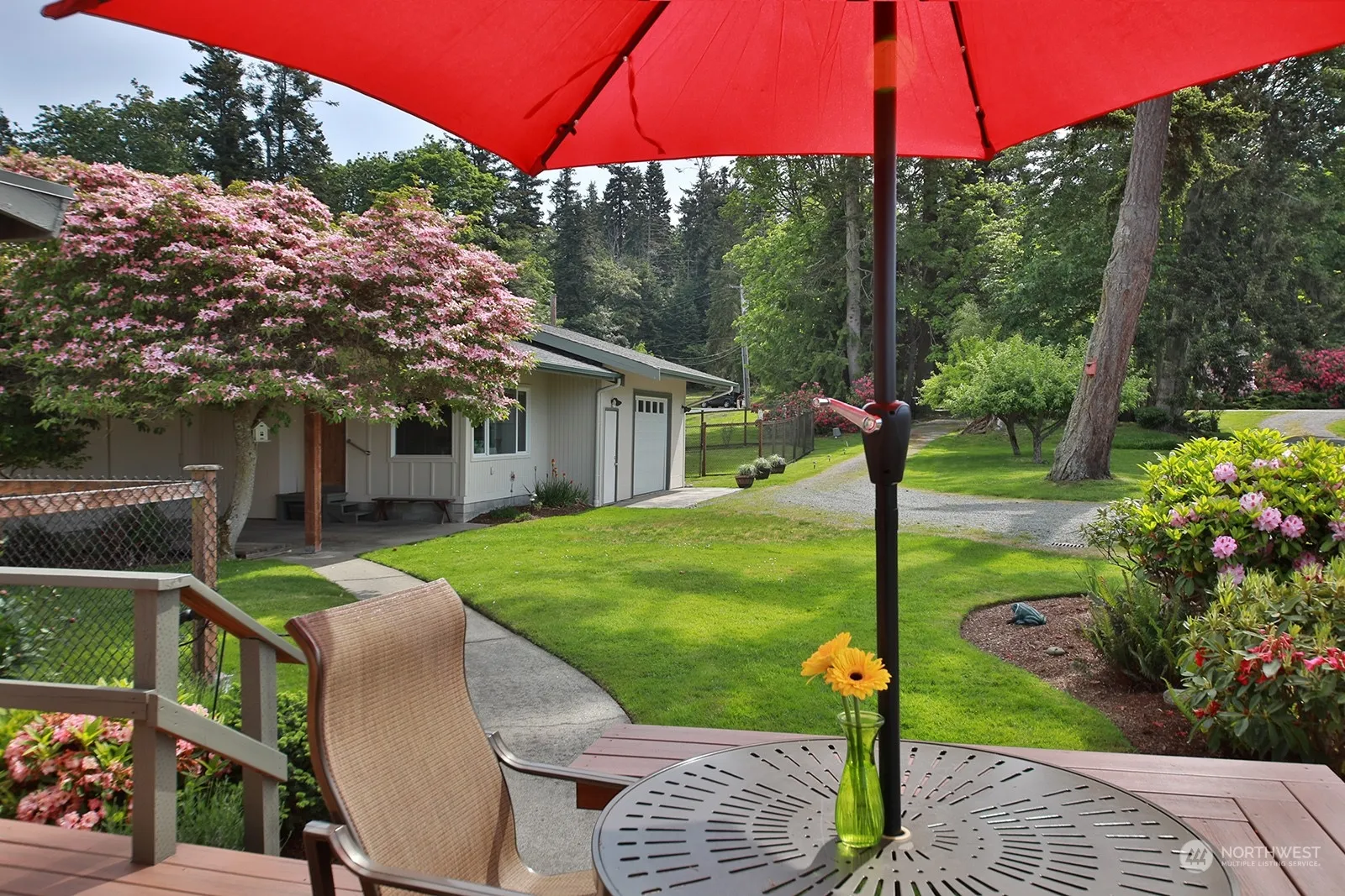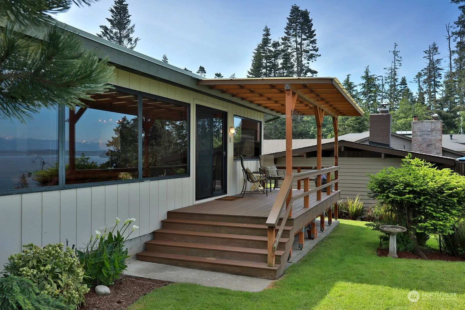 Upon entering this light and cheery home, your eyes are captivated to an amazing west-side view of Mutiny Bay, and the Olympics. This unique & spacious rambler, with lovely tile and hardwood floor upgrades, is perfect for gathering, along with the warmth of the wood-burning fireplace and stunning evening sunsets. There is a corner room with a picturesque view for the perfect home office or gym. A multi-purpose room with endless storage has many possibilities or be used as a spacious bedroom. East and West(covered) decks for outdoor pleasure. The studio/office guest house off the carport is a bonus. Garage/workshop or both, depending on your needs, includes a wood stove. Deeded beach access for fishing or long beach walks is calling you!