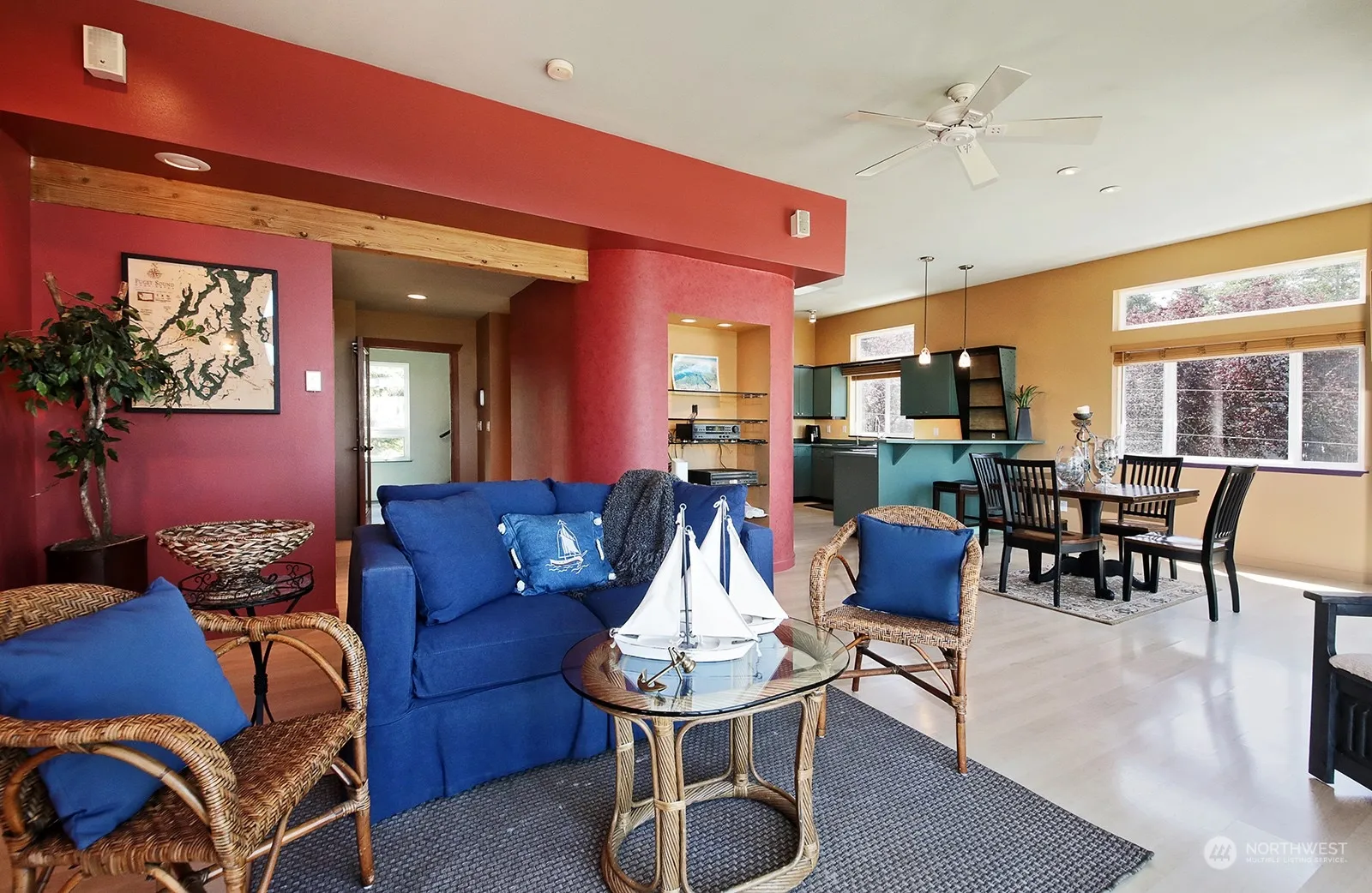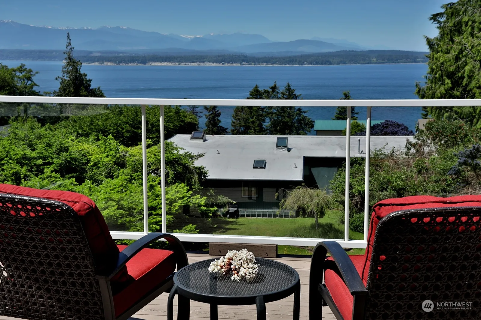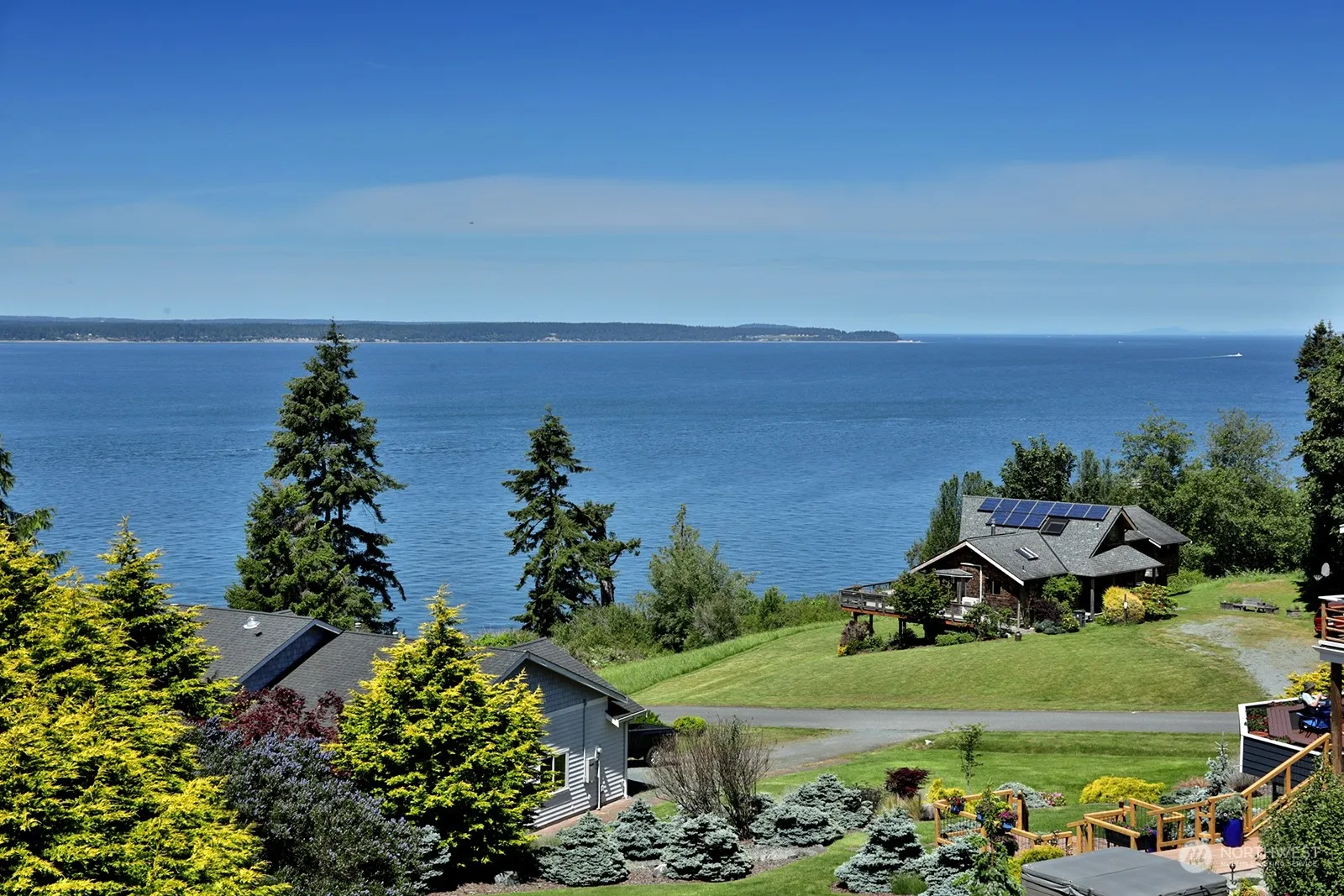 Smartly designed west-facing home with breathtaking views of Admiralty Inlet & the Olympic Mountains. Protected views of the shipping lanes & sunsets captivate from all levels. This unique PNW home sits on a private +/- .84 acres with lawns, gardens, & evergreens. Every floor of this tri-level offers abundant natural light supported by warm & inviting room colors. The top floor offers a primary bedroom, kitchenette, private deck & could serve as an income producing rental. The second floor offers its own primary bedroom, full kitchen, living room, expansive deck, & utility room. Downstairs you’ll find a flex-room with ¾ bath easily accessed from the oversized garage. Minutes to beaches, golf, trails, shops, wineries, restaurants, & ferries.