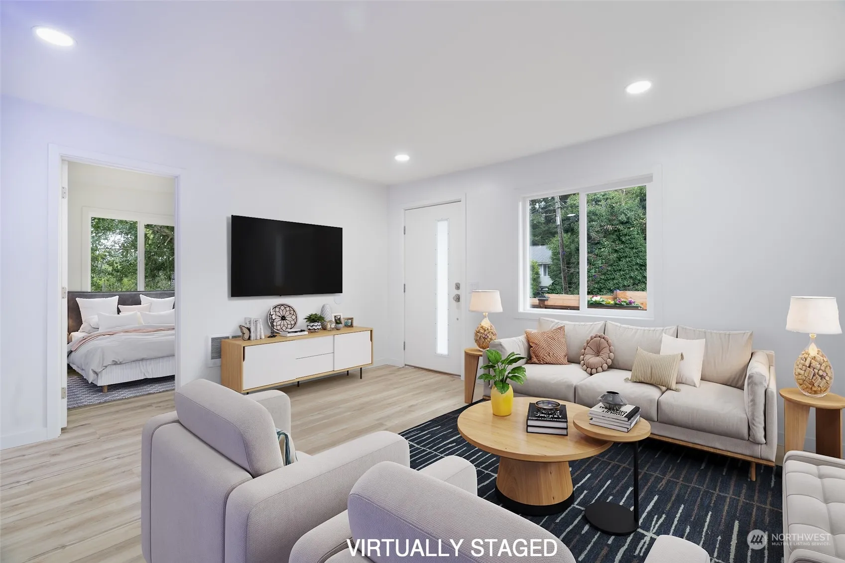 Price Drop!! Seller offering $10k in Seller paid closing costs! Come home to this tastefully updated one story beauty in south Shoreline. On an oversized lot this home features 3 bedrooms and 1 full bath and updates enough to make your head spin. From new drywall, Vinyl Plank flooring, new appliances to include a stackable front loading washer/dryer, new electrical, new windows, canned lighting, Quartz countertops, new cabinetry and new paint inside and out. Outside, you’ll find new fencing, landscaping, siding, and a spacious deck with a new storage shed. Parking is plentiful in the huge driveway. Minutes to I-5 and the coming Light Rail Station on 145th Ave NE. Don’t miss out on this one!!!
