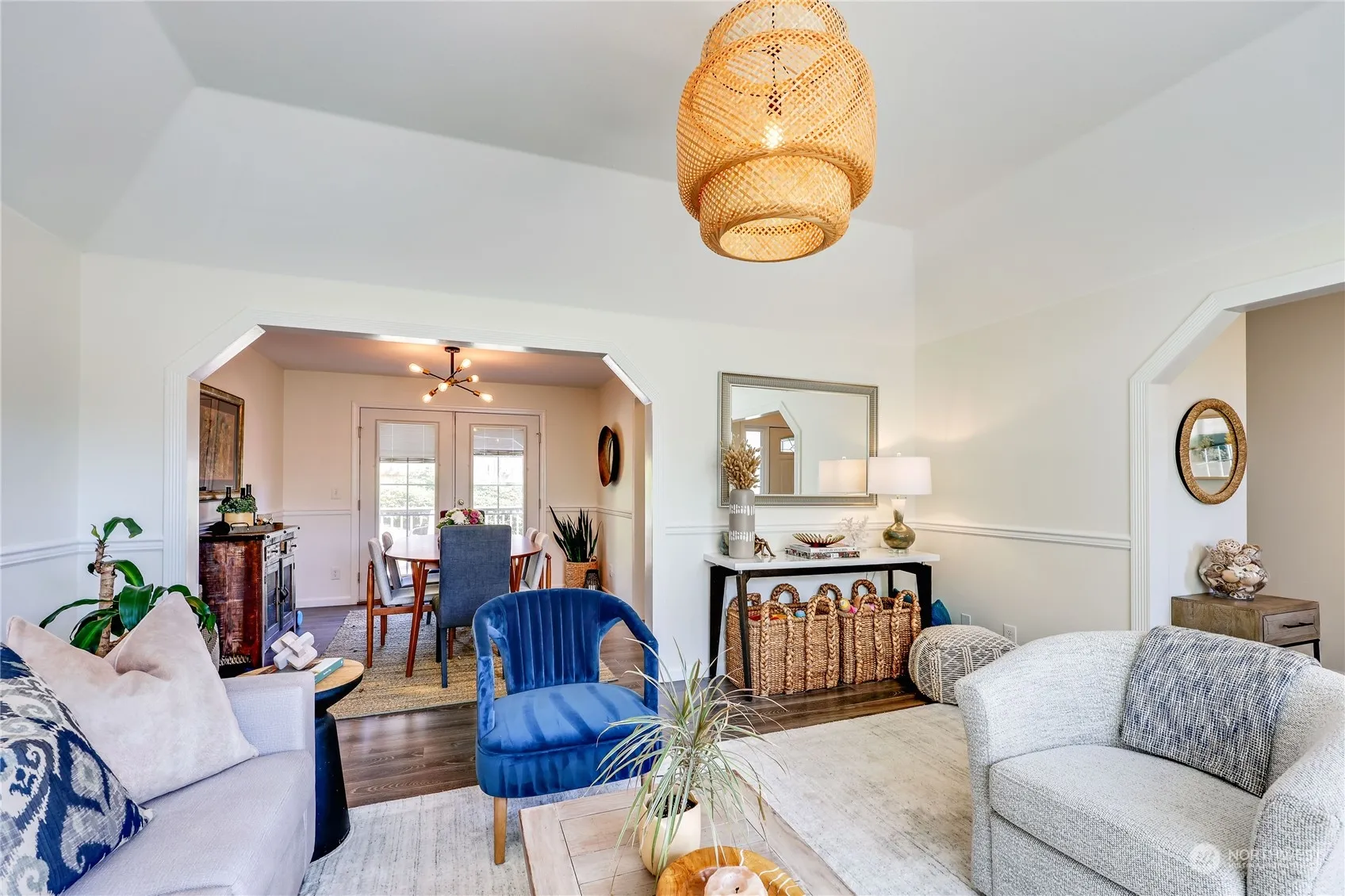Updated, three bedroom split level home in central Silverdale location. Vaulted ceilings make this open floor plan feel spacious and homey. Enjoy all the living space with a formal living room as well as another gathering room on the lower level with cozy natural gas fireplace. This home has been modernized since it was built with new tile granite countertops, roof, vinyl plank flooring, stainless steel appliances, natural gas furnace, newer windows, and siding. Enjoy your private back deck and fenced in backyard. Quiet cul de sac in convenient, walkable neighborhood with park and play area for children.