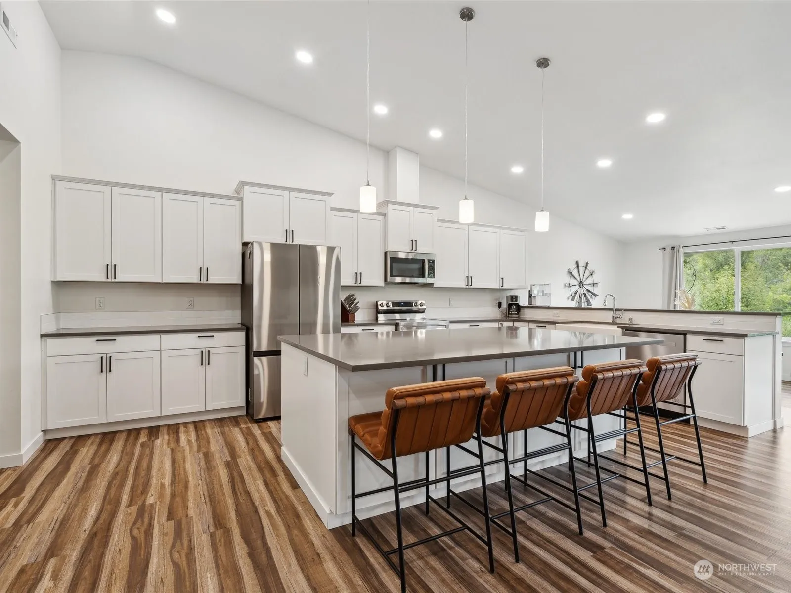 Don’t miss this highly sought-after 1-level beauty on 4.46 acres, centrally located near Silverdale trails, shops, schools & Navy base. This lovely home features an open floor plan, spacious great rm w/vaulted ceilings, king-size chef’s kitchen w/stainless appliances, quartz countertops, large center island w/breakfast bar, farm-style sink & walk-in pantry w/space for 2nd refrigerator. Primary bedroom has 5-piece ensuite w/double sinks, soaking tub & walk-in closet. 2 additional bedrooms w/2 hallway bathrooms, light & bright family rm which can double as a TV rm, crafting or play rm. Office w/interior & exterior entrances, bonus rm – great for yoga or gaming! Room for RV/boat parking, 4-car garage, fully-fenced area & fruit trees.