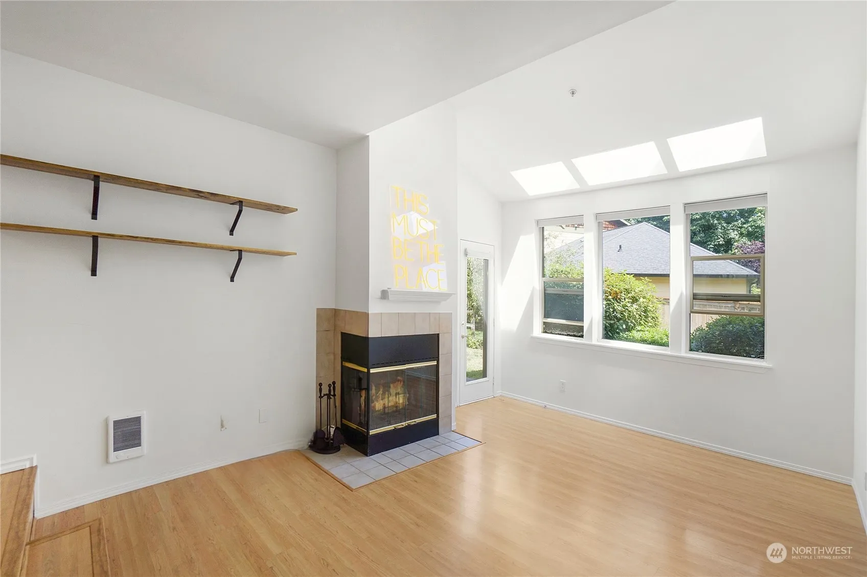 Discover the perfect Central Kitsap location with this charming 1st-floor, one-level condo in Silverdale! Just minutes from the mall, YMCA, Naval Bases, and more! The kitchen features stainless steel appliances and a convenient breakfast bar. The second bedroom boasts new carpet and a Murphy Bed, maximizing space and functionality. Enjoy seasonal views of Dye Inlet from the bright living room, naturally lit w skylights and large windows. Stay cozy by the wood-burning fireplace. HOA maintains the spacious yard. Relax in your outdoor space on the private patio off the primary bedroom. Private one-car garage with easy freeway access & a nearby bus route, commuting is a breeze. This condo offers comfort, convenience, and an unbeatable location!