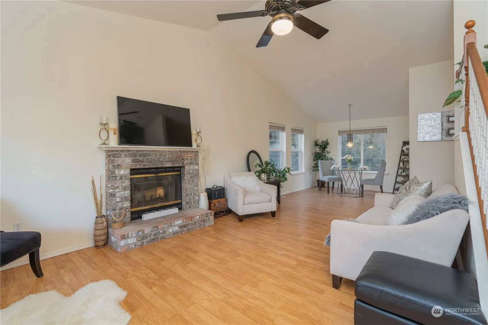 Discover this beautifully updated 2-story Tumwater Hill home, just steps from Jim Brown Park. This single-owner residence features fresh interior paint, new carpet, and a 2018 roof. With 3 bedrooms, 2 baths, and 1500+ sq ft, it offers vaulted ceilings and a fireplace in the living/dining area, and a cozy eat-in kitchen adjacent to the family room. The primary suite has an updated bath, plus two more bedrooms and a full bath upstairs. Enjoy a seasonal peek-a-boo view of the Capitol Dome. Recent updates include a gas furnace (2019) and water heater (2021). The yard is newly reseeded and low maintenance, with a private deck and fenced dog run or possible RV parking. Enjoy nearby Tumwater Schools and park amenities.