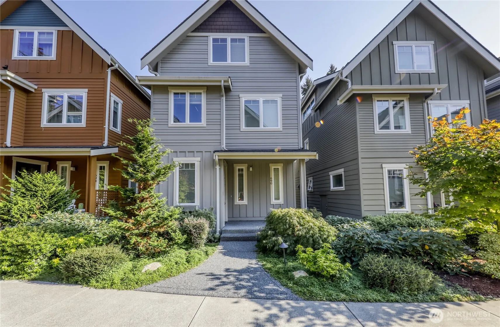 Gorgeous in-town home set in a beautifully landscaped enclave of homes, with high-quality design & finishes. This 2bd, 2.25 ba, free-standing home is located 0.8 mile from the Bainbridge Ferry Terminal and features, an extra large bonus space on the top floor, open floor plan, vaulted ceilings, hardwood floors, double pane storm windows, cozy gas fireplace, mini-split heat pump to keep you cool, beautiful kitchen w/eating space, quartz countertops, soft-close cabinets & drawers, stainless steel appliances & dual-fuel cooking range.