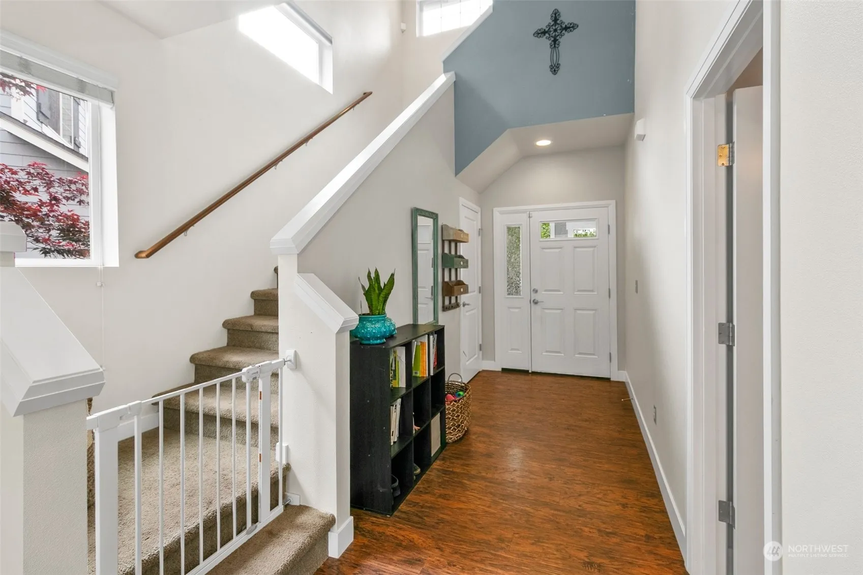 Beautiful home located in Sterling Crossing on a dead end street features an open kitchen with large island eating area and plenty of storage. Living room with gas fireplace, laminate flooring throughout the main level. Upper level features French doors leading to the master suite with double vanity and large walk in closet; 2 additional bedrooms with walk-in closets, and the family room/loft area. Fenced yard with patio completes this home.
