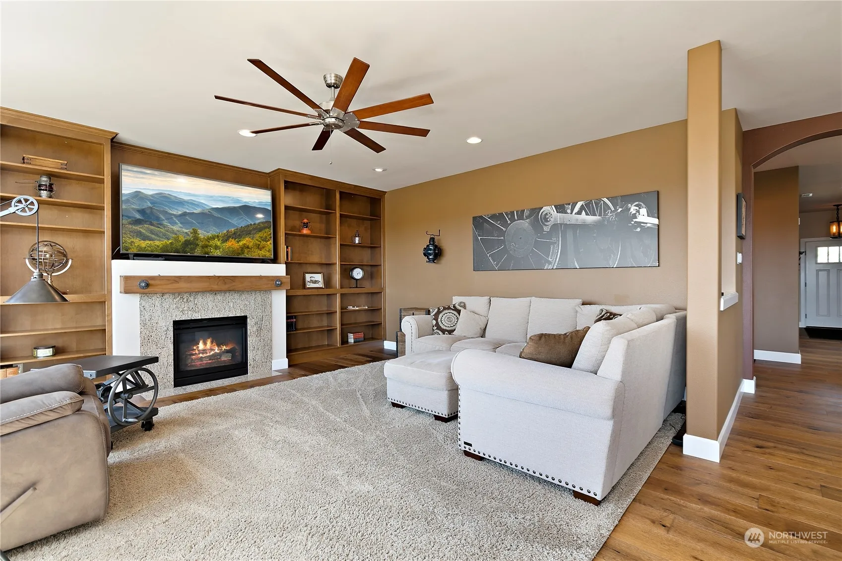 From the stunning mountain & territorial views, to the beautifully picked custom finishes, this is truly a one of a kind home! The main floor provides striking hardwood flooring, gorgeous floor to ceiling built-in bookshelves & custom fireplace mantle in the living room, gourmet kitchen w/ solid granite counters & butlers pantry. Upstairs provides a spacious bedroom, a bonus room perfect as media room, den or 4th bedroom & the lavish primary retreat, w/ 5-piece en-suite & simply the most stunning walk-in closet; custom California closets, built-in drawers w/ solid granite counters, get ready in pure bliss. Lower floor offers private guest bedroom, spacious second family room & don’t miss the custom wine cellar. Over $100k in custom upgrades