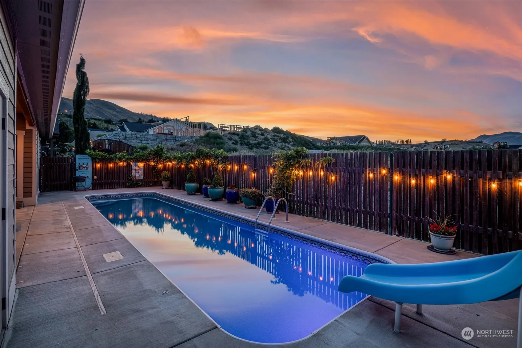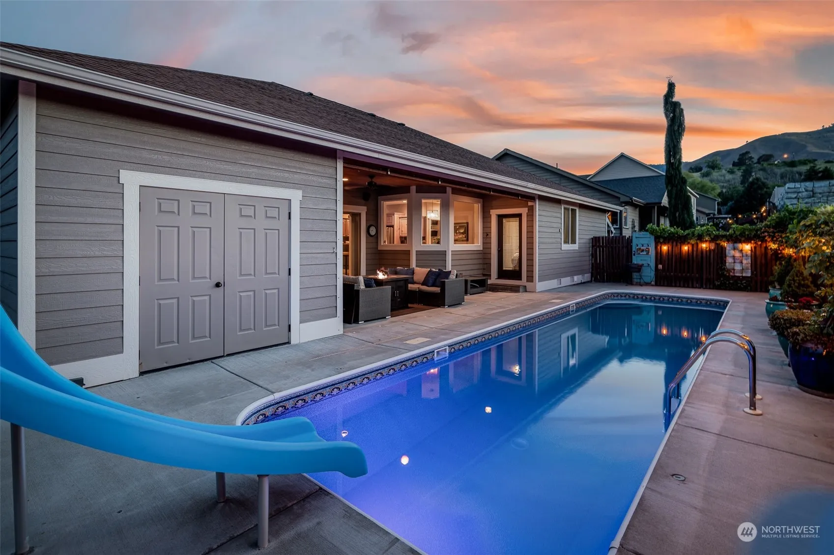 No compromise here – rest, relax AND entertain. Stay and play OR lock and leave. No mowing with this xeriscaped design. The patio and pool rival a resort! Home is spacious: 3 bed, 2 bath, plus office, with formal dining area, breakfast nook, and open kitchen (plenty of cabinets and counter space). Flow seamlessly to the covered patio, with custom curtain enclosure and 220v wiring for hot tub, to extend outdoor use into all seasons. Enjoy the separated floor plan with sizable primary suite on one side (large bath, walk in closet) and additional bedrooms opposite. Ceilings are 9′ throughout for an elevated feel. Meticulously cared for – move in ready, in time for Summer! New exterior paint 2022, enclosed garden area, Wen Rec irrigation.