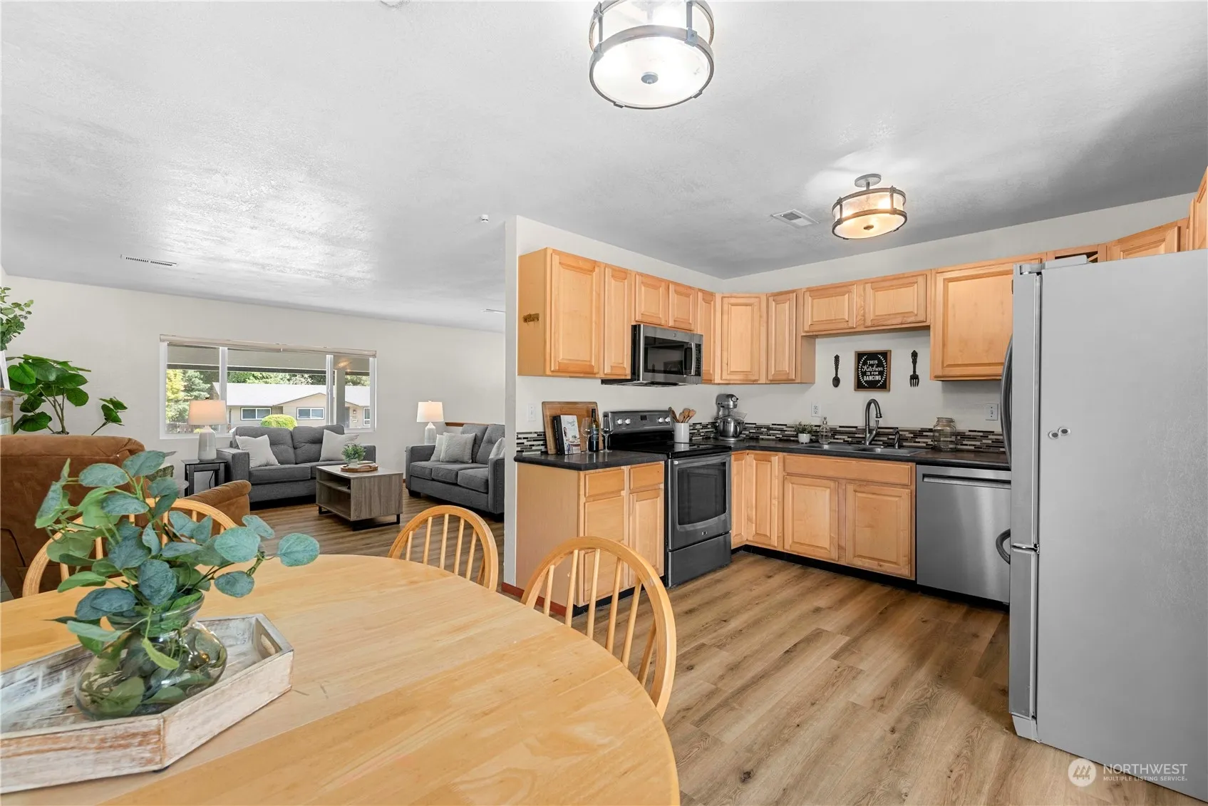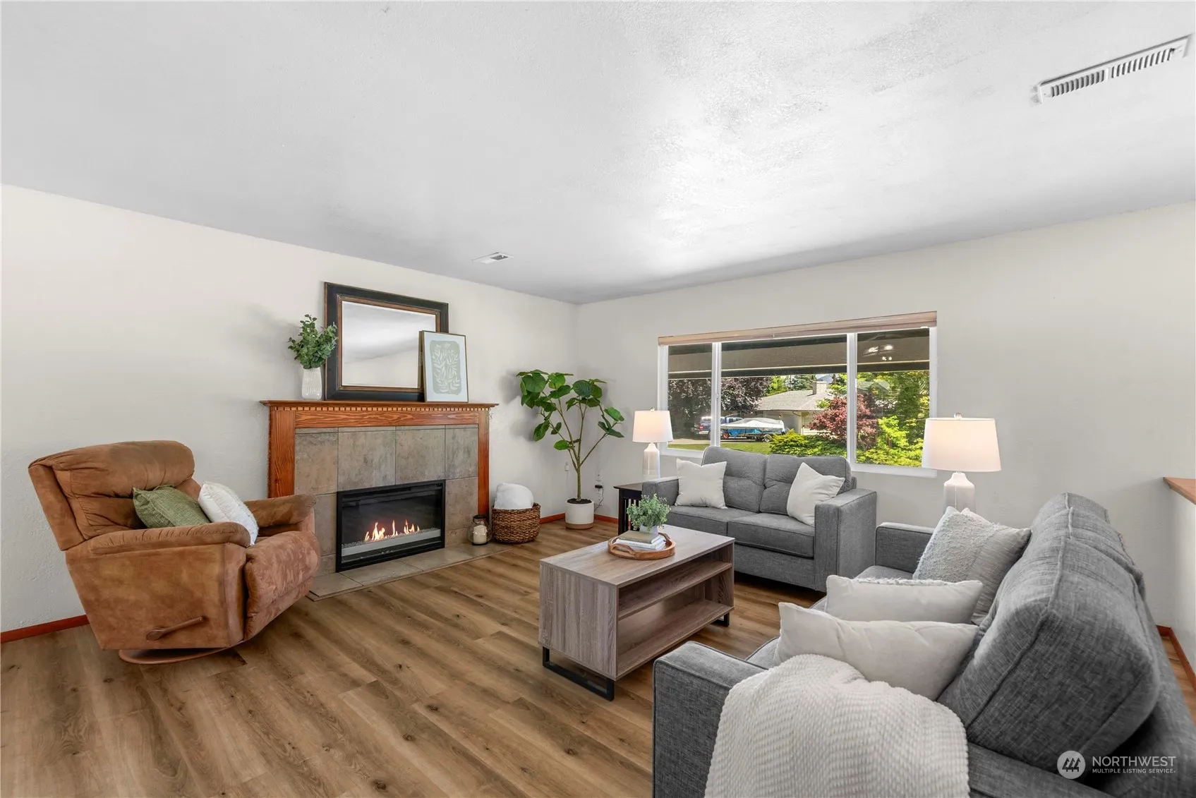 Welcome to this beautifully maintained mid-century home, featuring 4 spacious bedrooms including a beautiful primary suite. Step into the inviting living room adorned with sleek LVP flooring & an electric fireplace, perfect for both relaxation and entertaining. The open kitchen boasts updated cabinets and a stylish tile backsplash. The large living room downstairs offers ample space for activities! The light & bright basement full bath was newly remodeled in 2024. Enjoy your morning coffee on the charming covered front porch or host gatherings on the expansive covered back porch, ideal for outdoor living. The home also includes a convenient 2-car garage and irrigation water! Newer roof, paint, windows & HVAC in 2020.