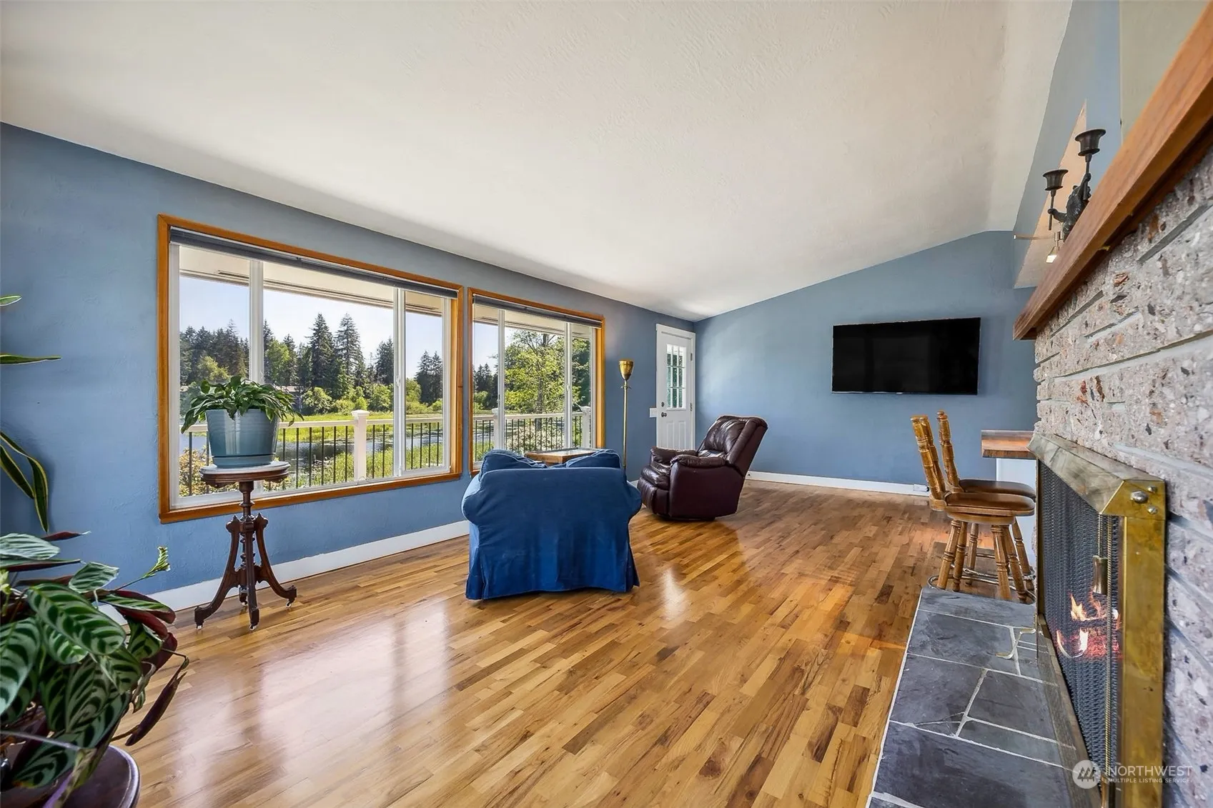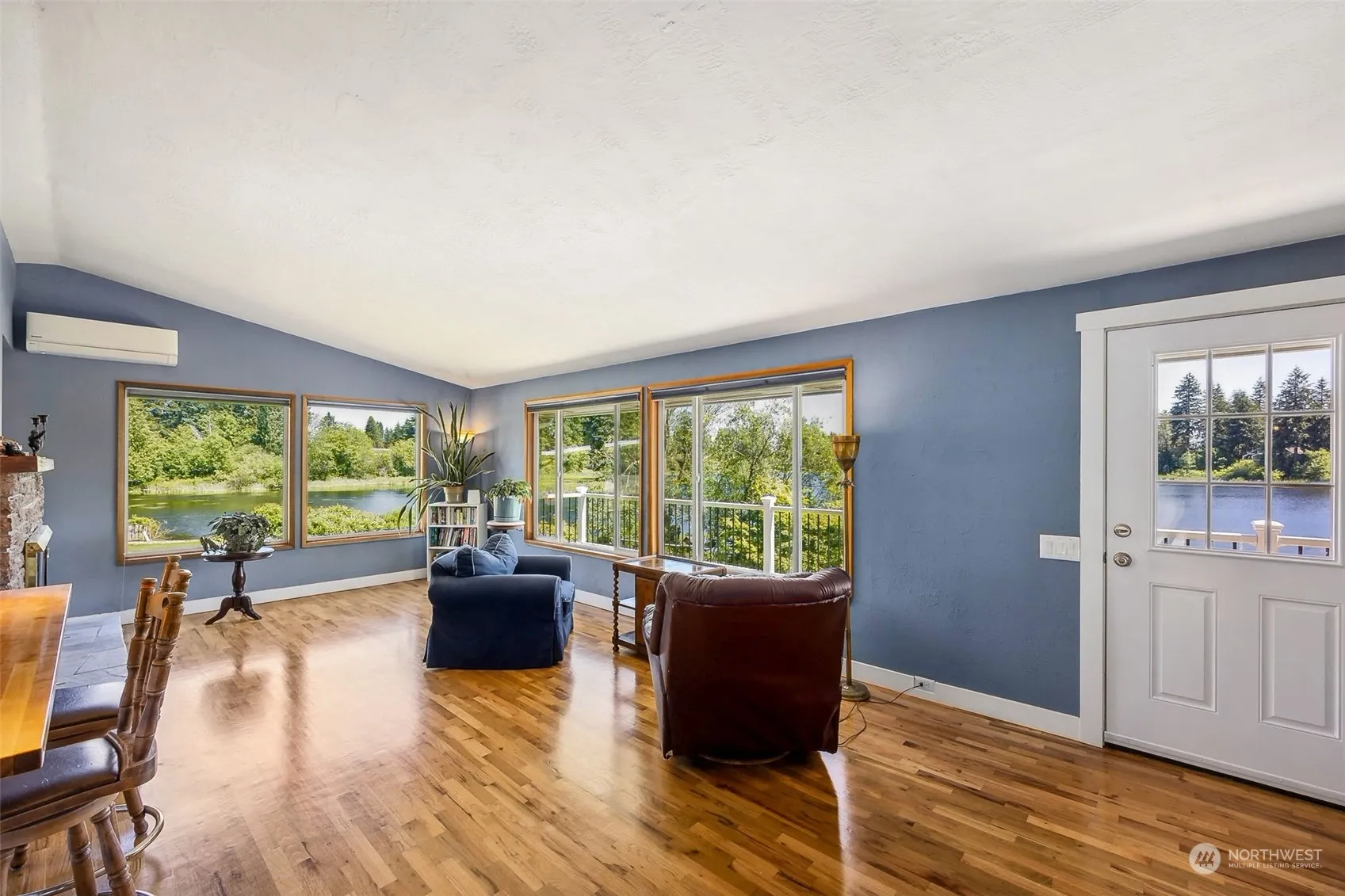 Barnes Lake waterfront home in the city of Tumwater! Convenient location within minutes of Costco, I-5, & more! Secluded location on a small lake with no public access. Enjoy 180+/- feet of low-bank lakefront, watch the sparrows, eagles, & more from the covered deck or large upper living room windows. Beautiful new kitchen upstairs, tons of natural light, hard surface flooring thru-out. Upper level primary bedroom w/ lake view & deck access, recently updated primary bathroom, den off the primary or convert back to a separate bedroom. Lower level w/ kitchen, living/dining or entertainment area, + bedroom & ¾ bath w/ full tile surround shower. Mini-splits for climate control. 2-car garage. Mature landscaping & plenty of space to entertain!