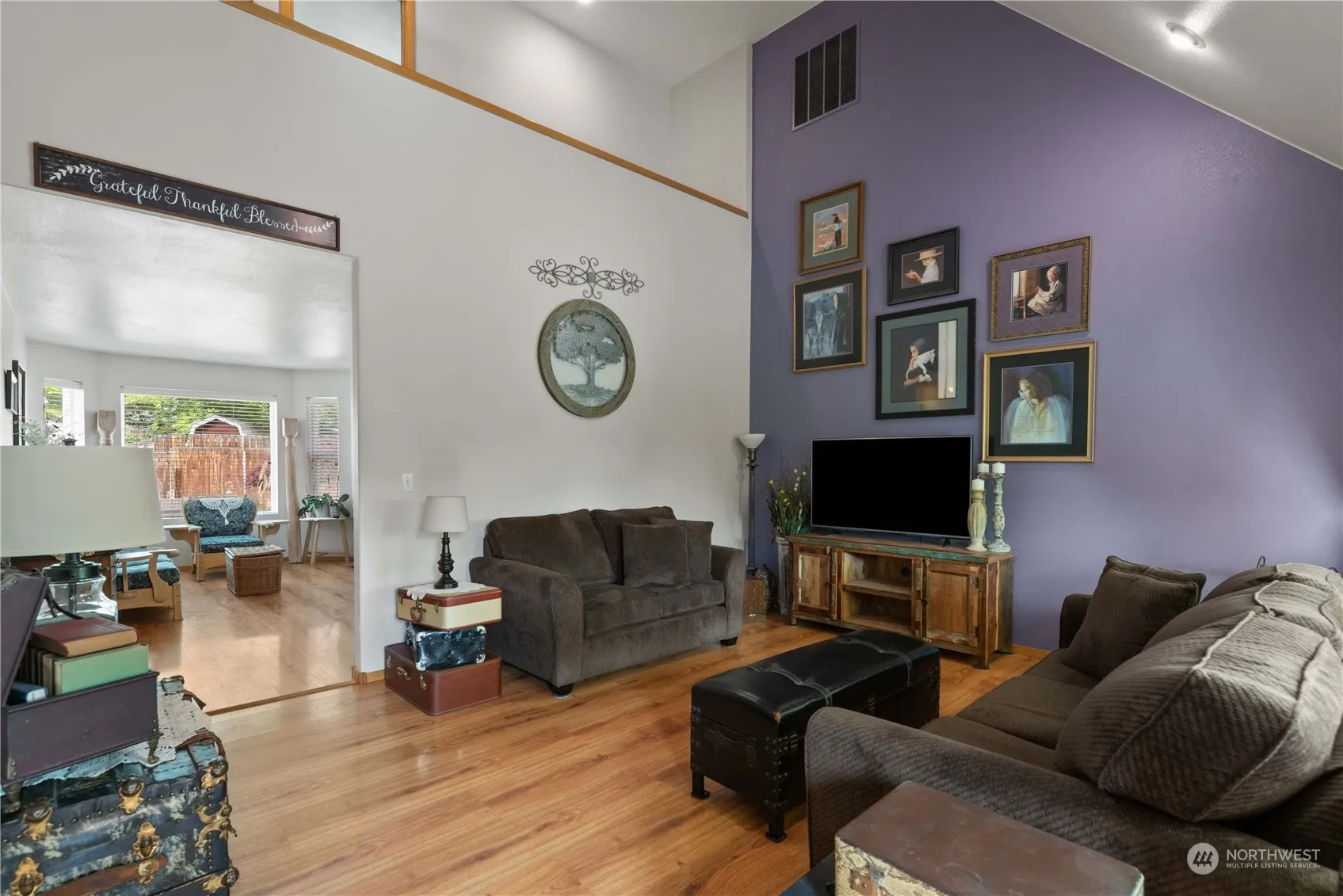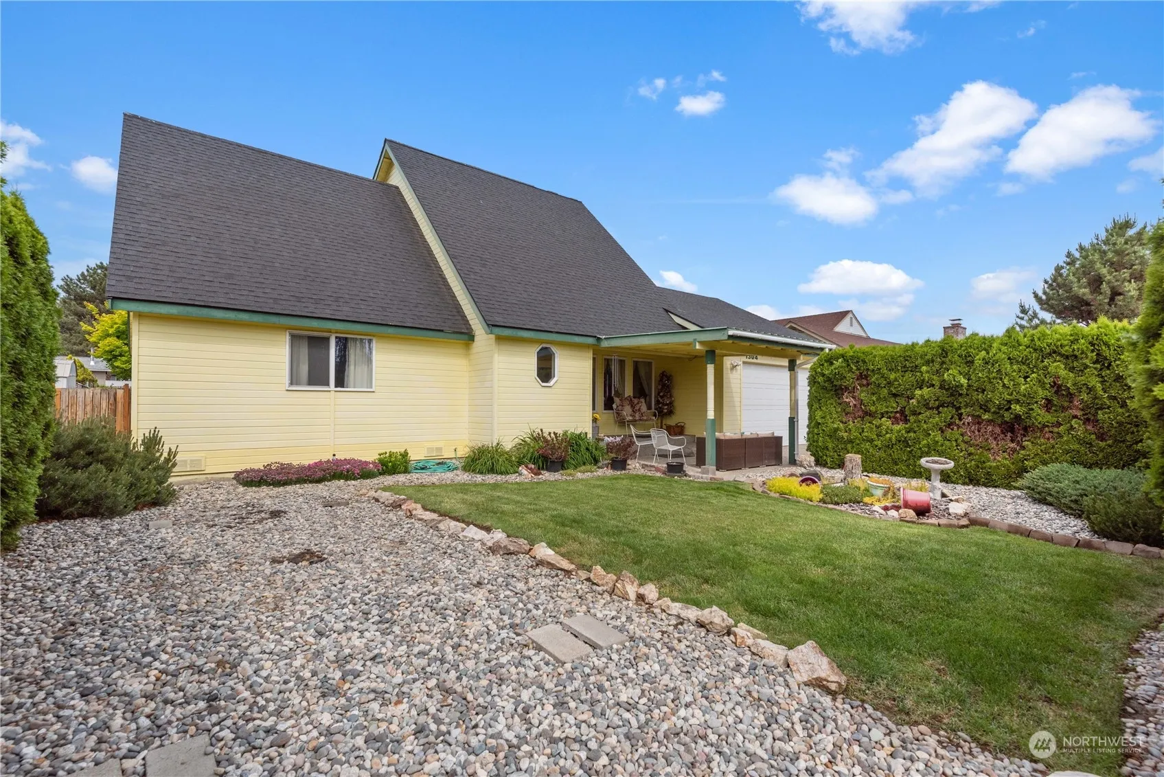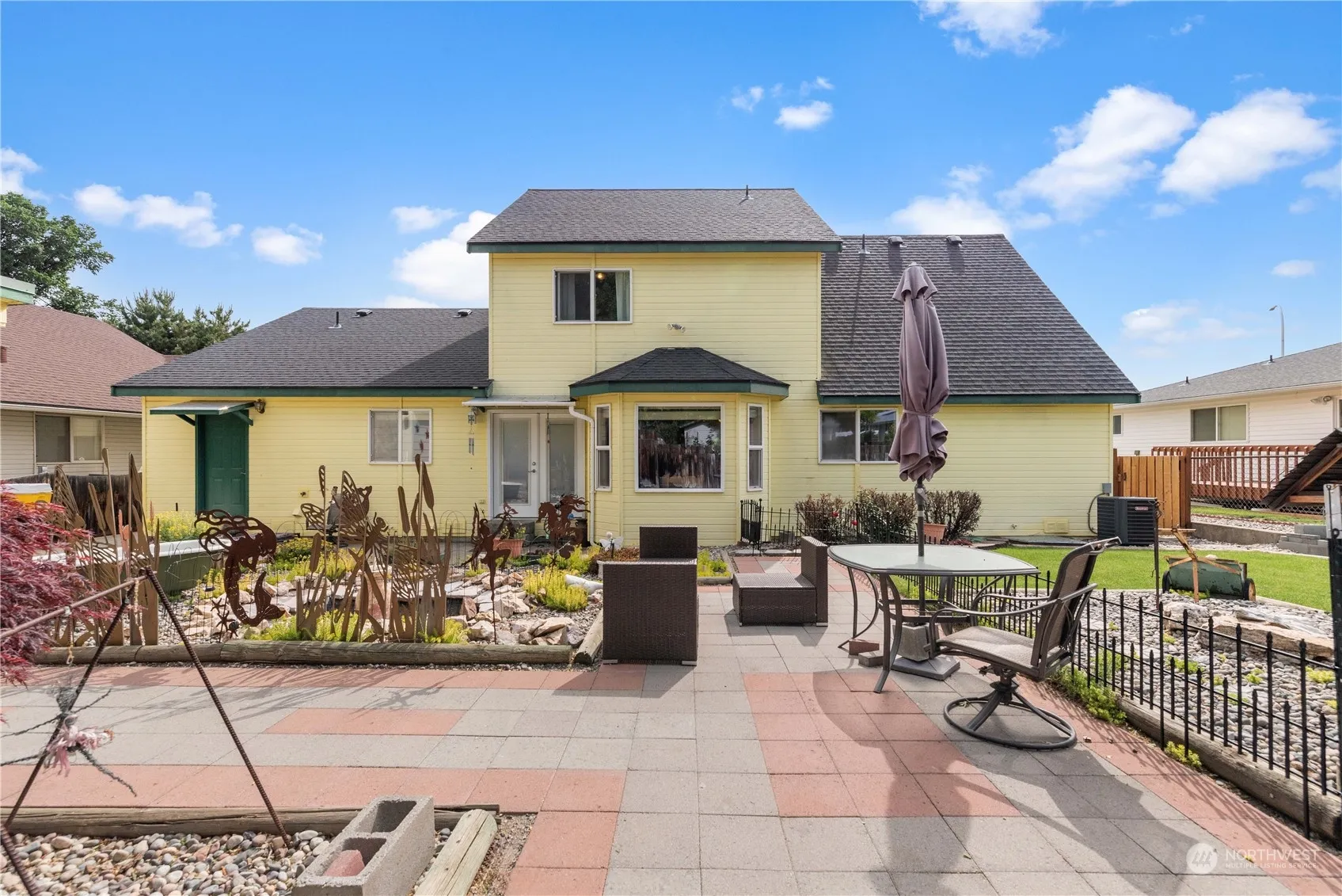 This custom built home boasts one owner and is situated in a quiet neighborhood. Lovingly cared for, you will enjoy it’s custom features! Soaring ceilings in living room with laminate flooring throughout main living areas. Kitchen has an island and is open to the dining room with French doors and a beautiful family room with bay windows. Primary suite is privately located on main floor along with a 2nd bedroom and full bath. Utility Room and half bath are near garage for added convenience. Upstairs are 2 additional bedrooms and a full bath. Rear yard is private with large patio, 20’x10′ shed with electricity and room for all your gardening needs! Irrigation water and RV Parking too!