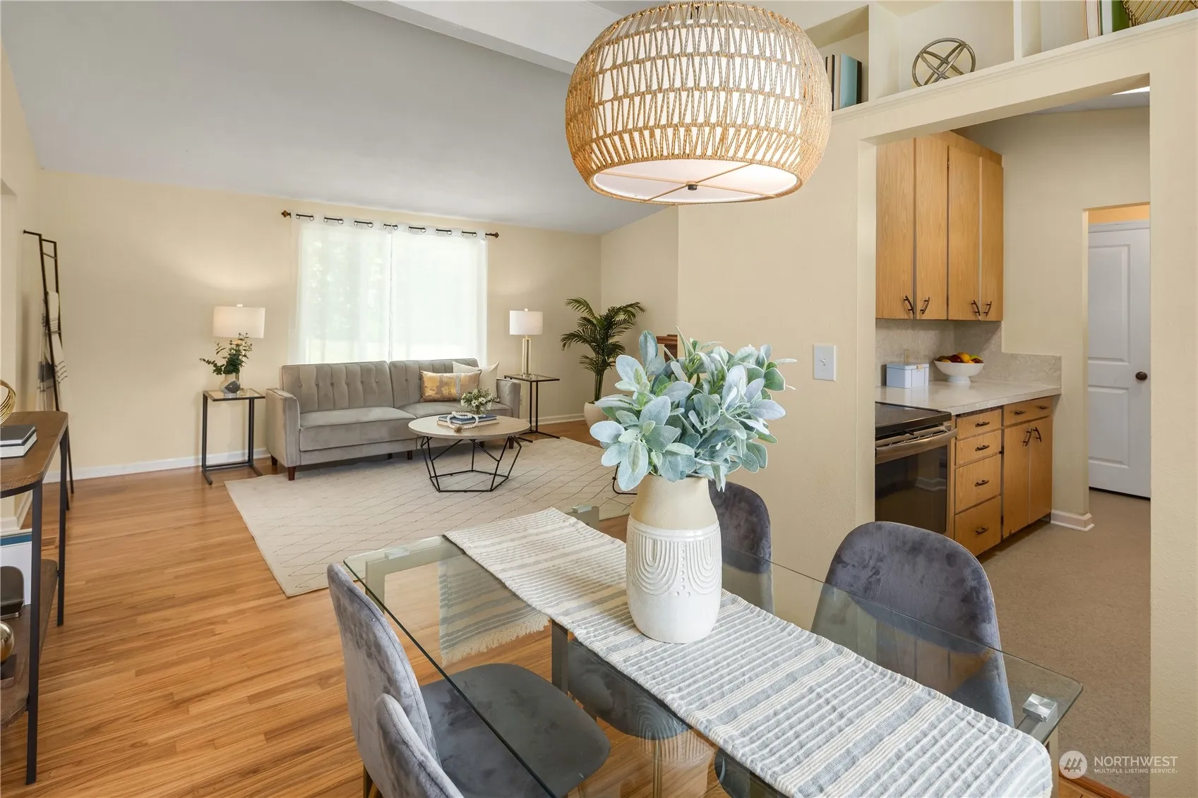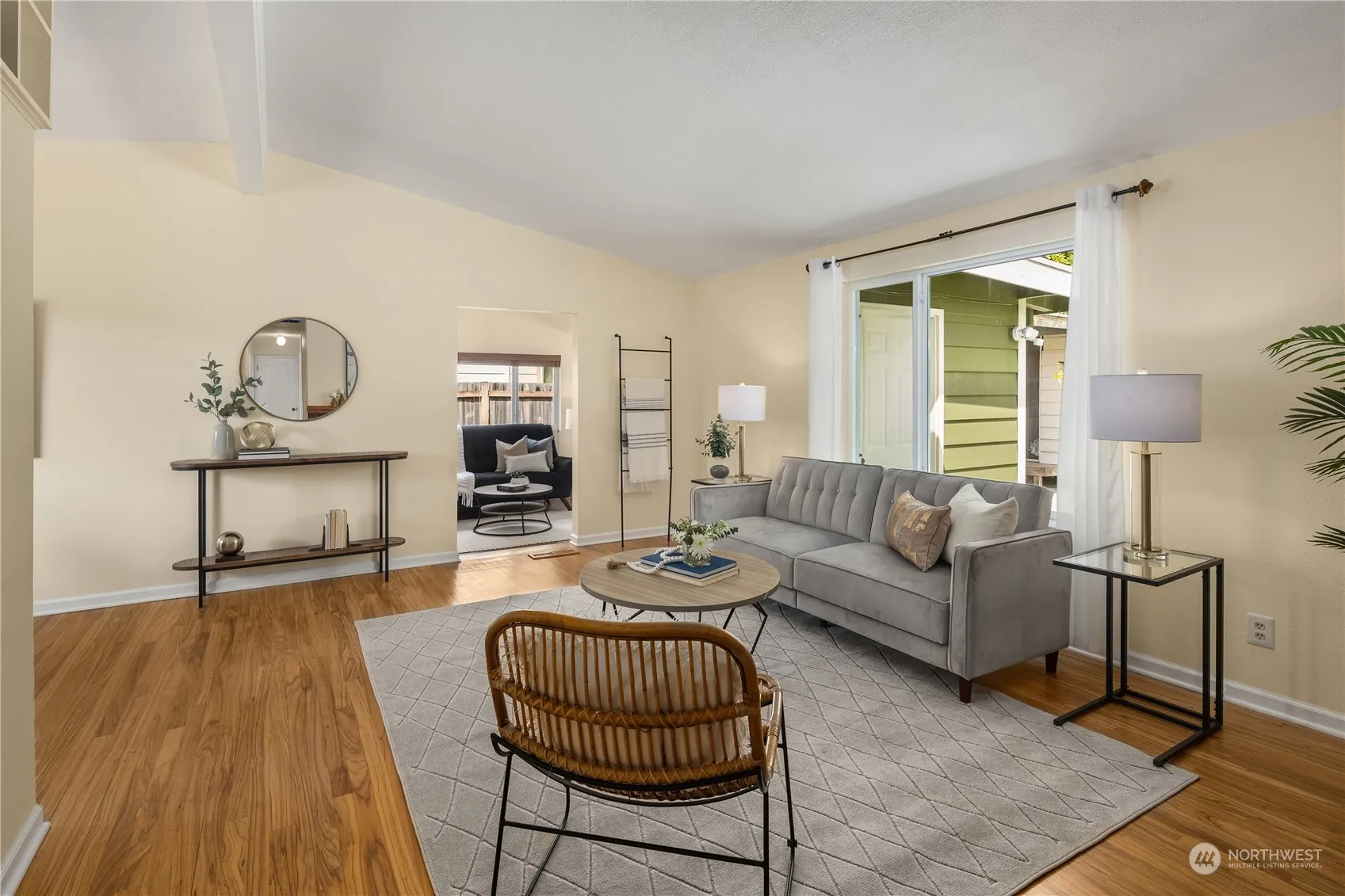 This mid-century rambler located on a quiet dead-end street is a gem. Hardwood floors, vaulted ceilings and built-ins in the living and dining rooms, wood burning fireplace and natural light. Kitchen has stainless steel appliances, new carpet in all 3 bedrooms, primary suite with half bath, plus family room with cozy wood stove. Attached 1 car garage with lofted storage. Tons of potential for this spacious, level backyard has a large storage shed/workshop to store all your garden tools and tinker on your hobby projects. Centrally located with easy freeway access and the new Light Rail Station nearby makes for an easy commute in any direction! Groceries, restaurants, coffee and other great amenities nearby! Shoreline School District!