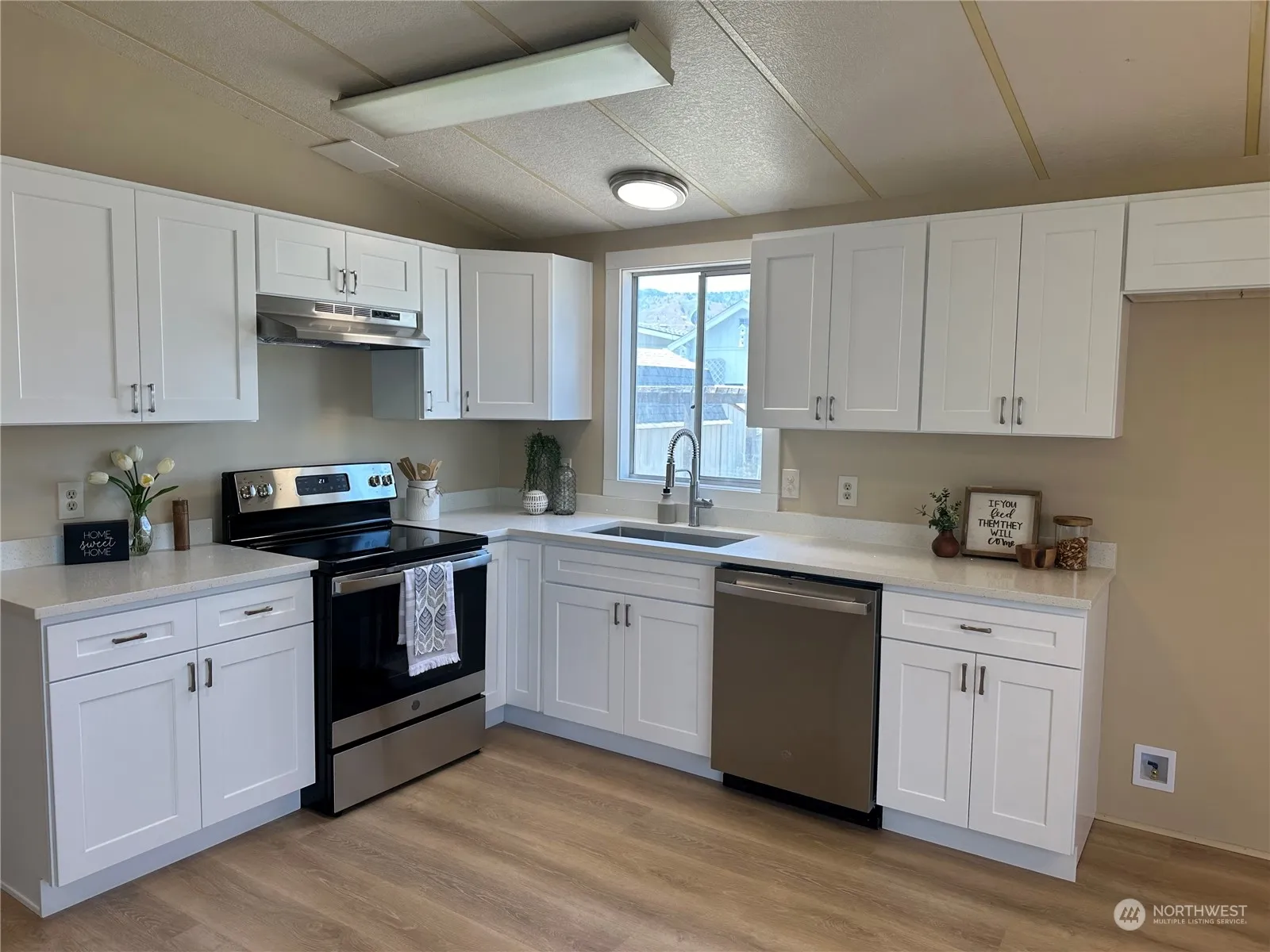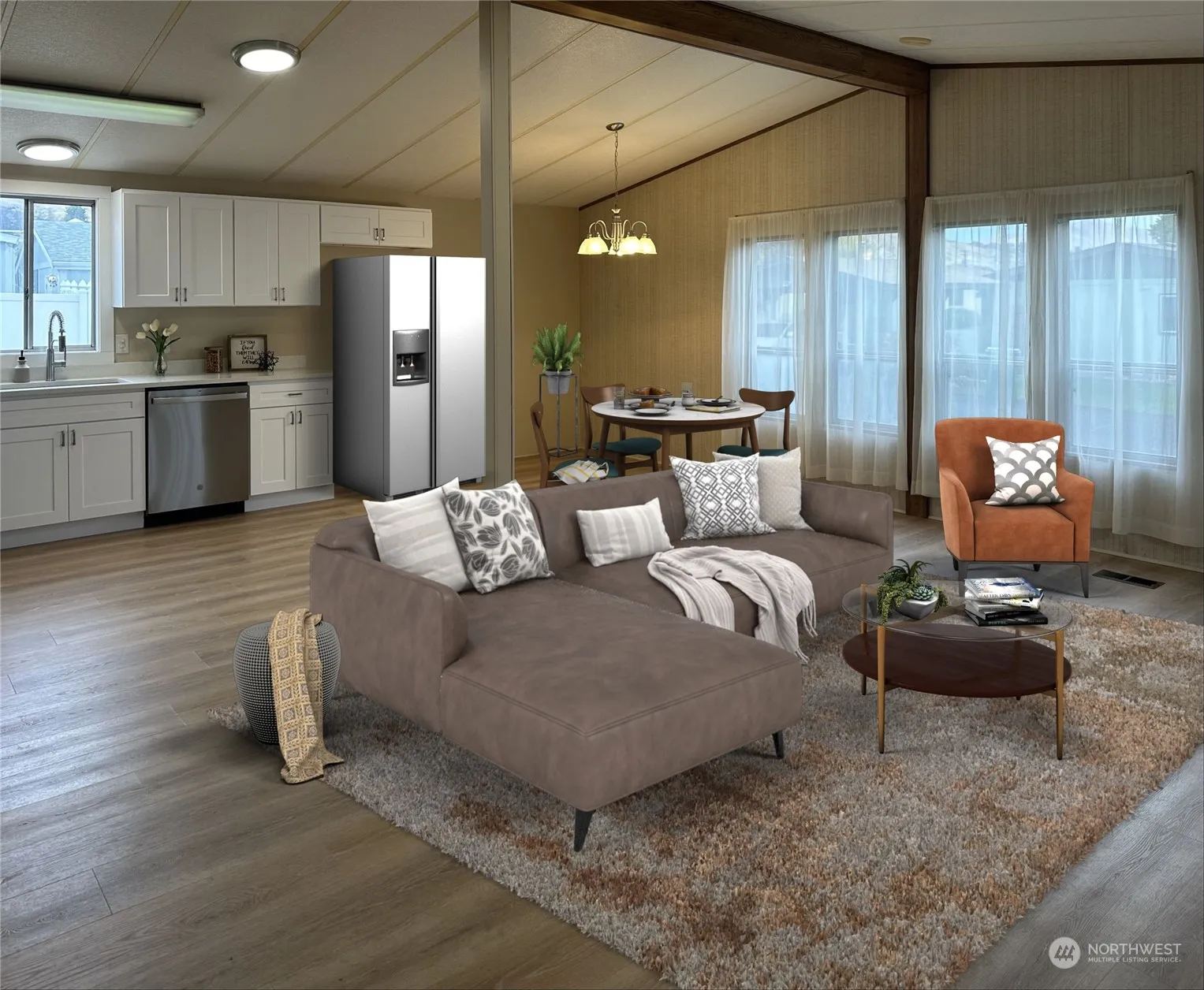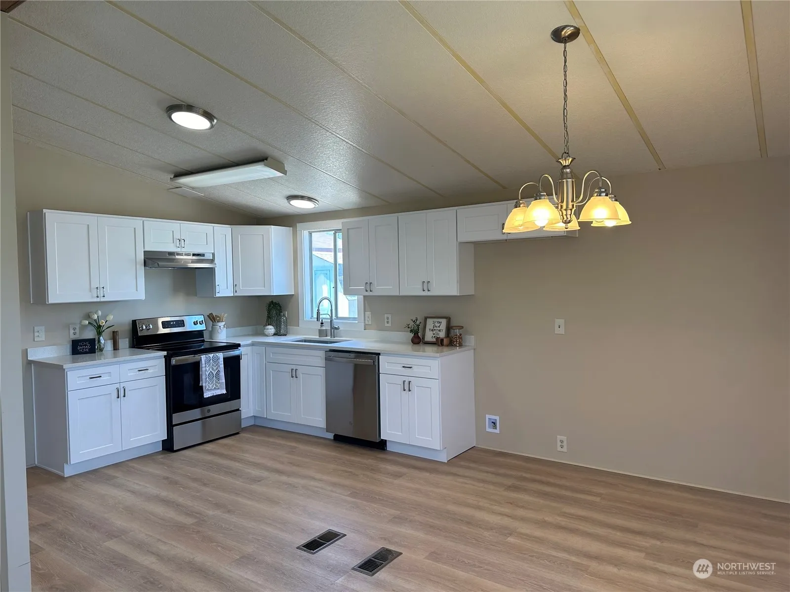 GREAT NEW PRICE! This 2 bedroom 2 bath corner lot home has been updated with all new LVP flooring, new kitchen cabinets w/ quartz countertops and new appliances. All the plumbing lines have been updated as well as a new hot water heater, new toilets and vanity in the main bath. Outside you’ll find lots of gardening space a good sized shed and outdoor living ready for your imagination. Exterior painted in 2023 and shed in 2024. Come make this sweet home your own! See supplements for contractor invoices showing work completed. This is an age restricted 55+ community mobile park. First sale fail at no fault of seller or home.