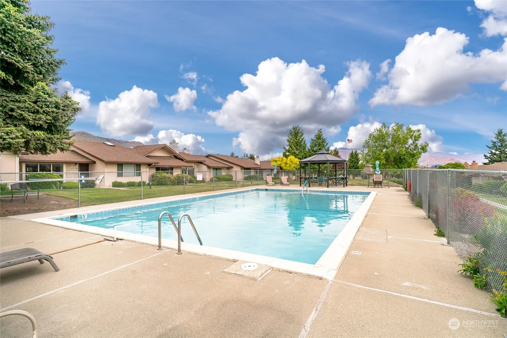 Well-maintained ground floor one-level condo in the sought-after Continental Condominiums community. Desirable community amenities include outdoor pool, clubhouse/ rec room and private courtyard. This end unit offers a formal living and dining room with propane fireplace and an abundance of natural light. Primary suite offers attached bath and huge walk-in closet. Kitchen with ample cabinet space leads to family room and incredibly private outdoor patio. Individual two-car garage provides an abundance of built-in storage space. The Continental Condo Community neighbors Washington Elementary School and is only blocks from Pioneer Middle and Wenatchee High School.
