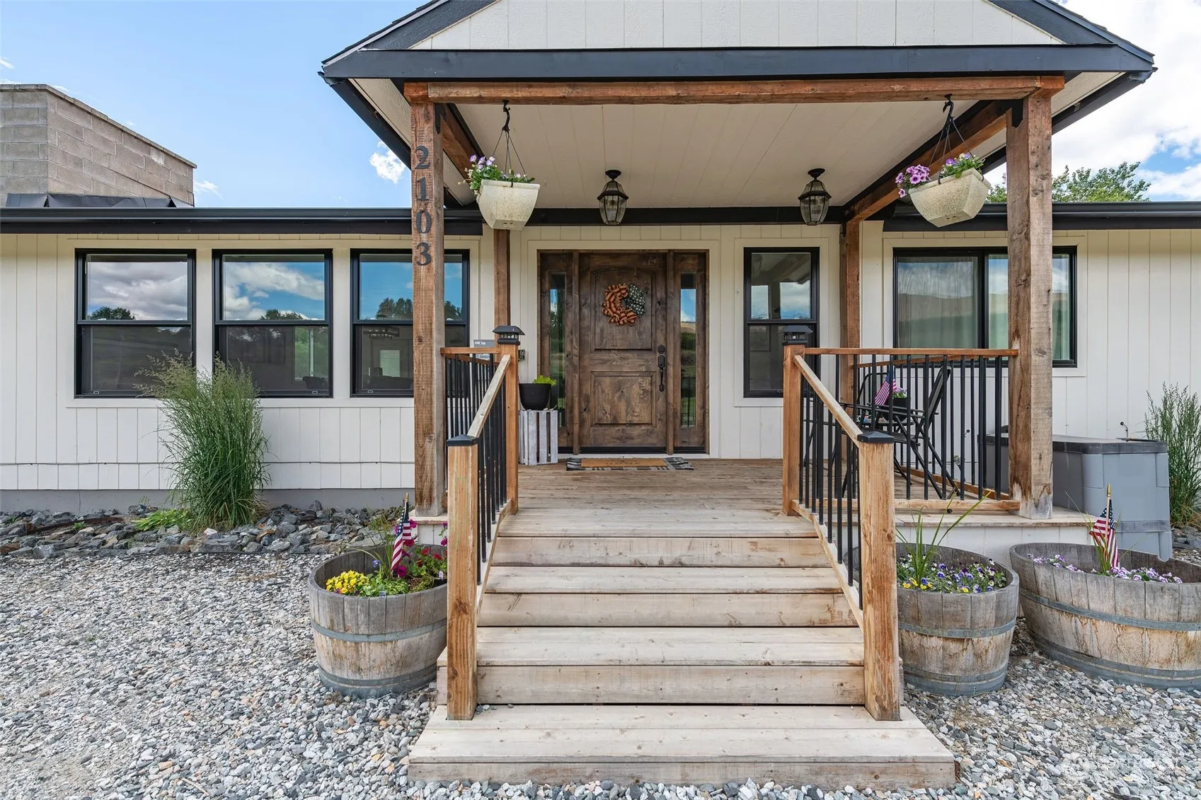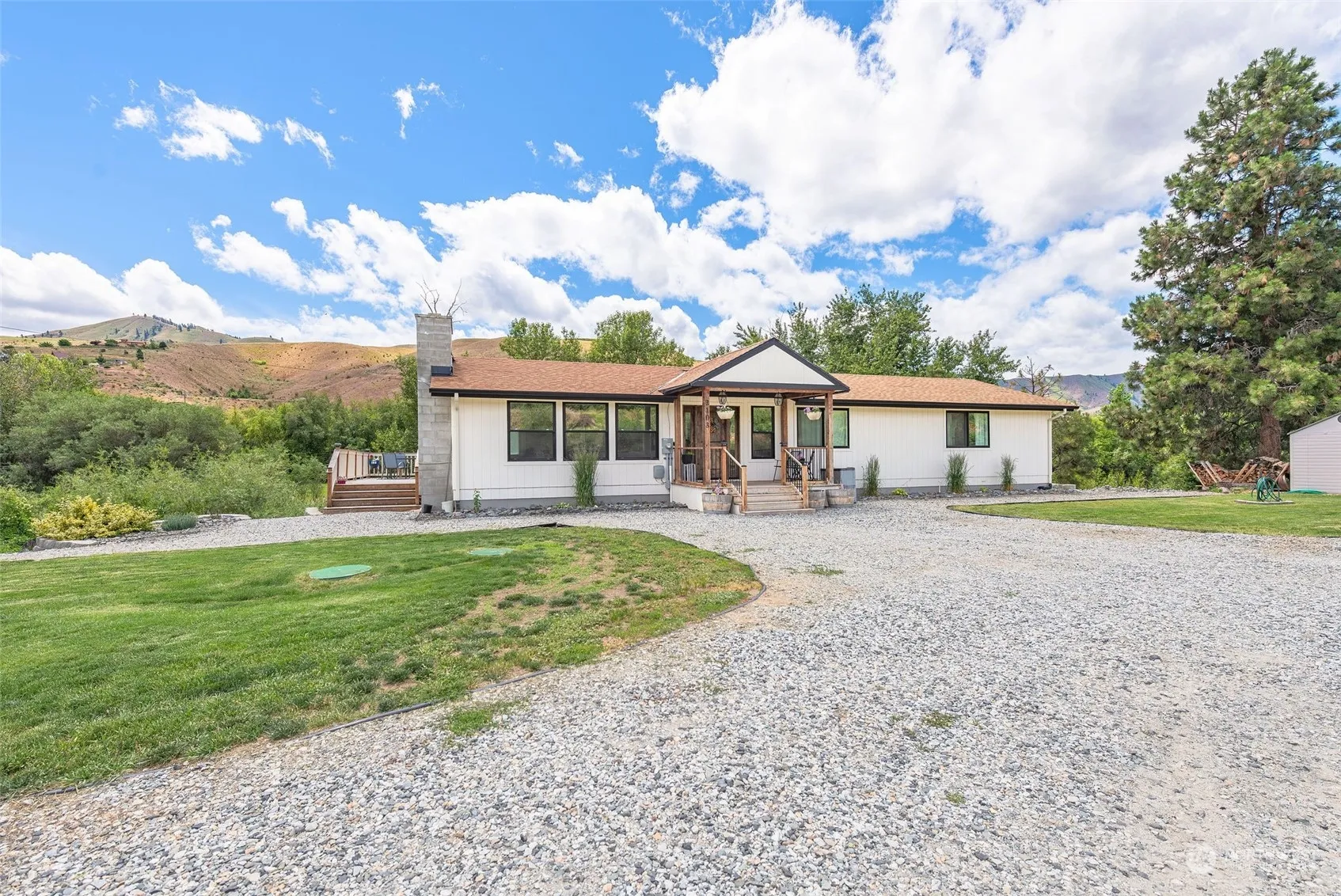 Discover the perfect blend of country charm and modern convenience at 2103 Lower Monitor Rd, a stunning Sunnyslope home on an expansive acre lot just minutes from town. This beautiful property features 4 bedrooms and 3 bathrooms, with an open concept living area, all designed to maximize natural light and showcase the gorgeous views. Unique touches include a shiplap ceiling in the main living area and a partial wrap-around deck. The primary bedroom boasts an ensuite bathroom with a luxurious soaking tub, perfect for unwinding. The lower level offers two additional bedrooms, an office, a family room with a wet bar, and a modern back patio for enjoying summer nights. Don’t miss the chance to make this exceptional home your own!
