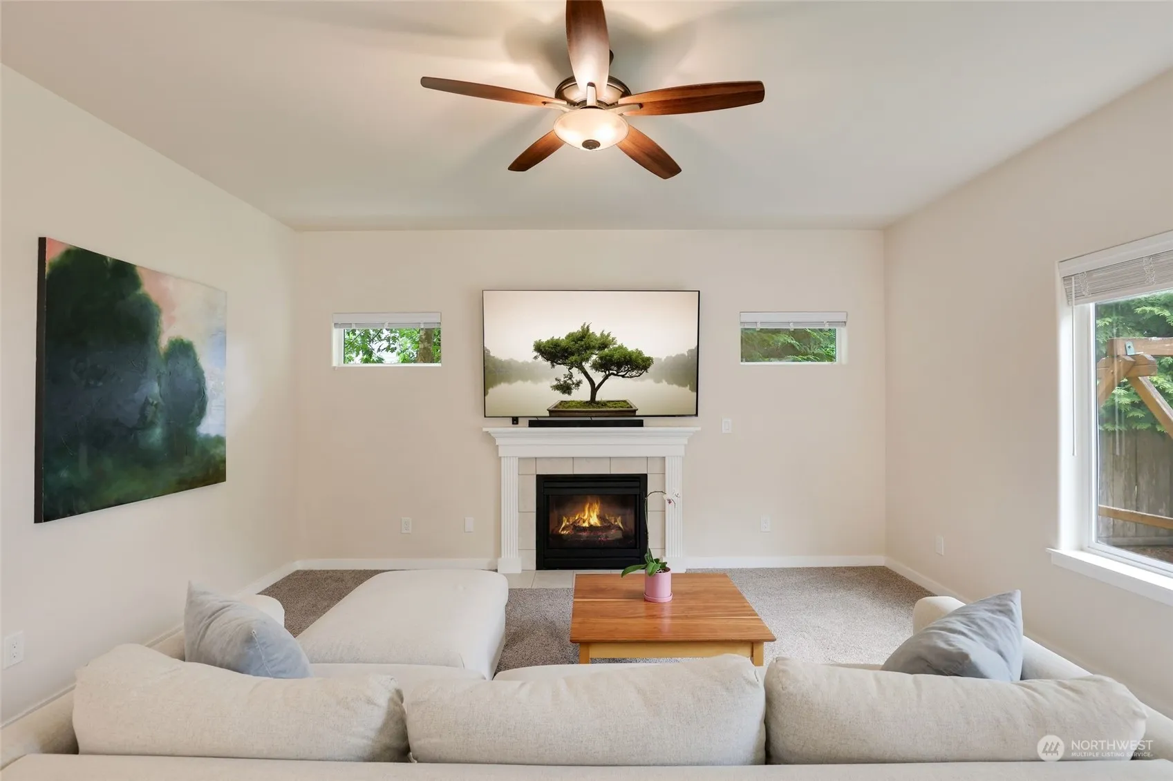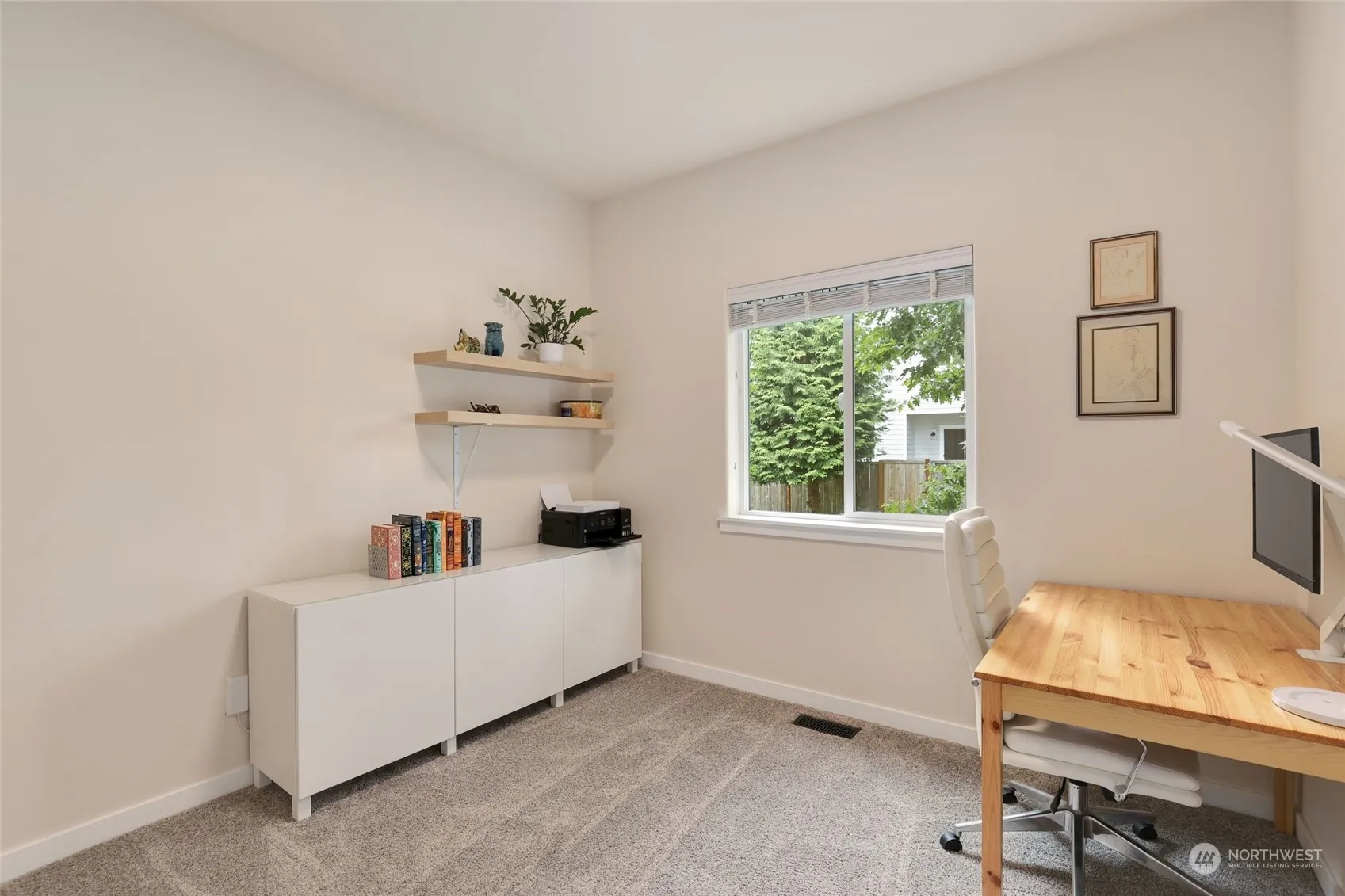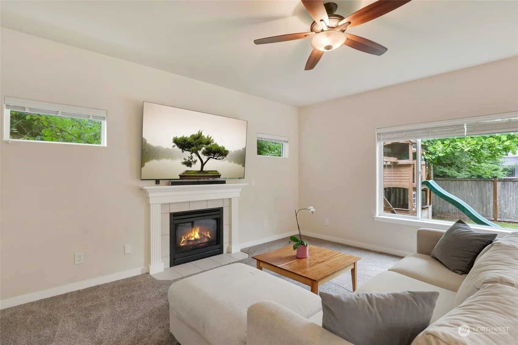 Tucked away on a dead-end street and flanked by HOA green space on 2 sides, this beautifully upgraded home is sure to please! The main floor features solid hardwood floors, an office, and an open concept great room opening to the covered patio and large, private fenced yard that wraps around the side of the house. The kitchen has quartz counters and newer bespoke Samsung appliances. Upstairs, you will find 4 comfortable bedrooms, including the primary suite with 3/4 bath and walk-in closet. New carpet, LVP, and A/C in 2023! 2-car garage with hanging storage. Centrally located to top-rated Tumwater schools, and just 5 minutes to Costco and the freeway for an easy commute.