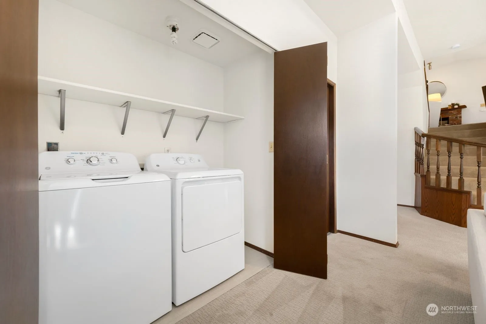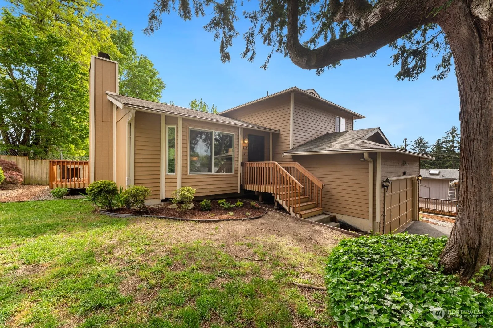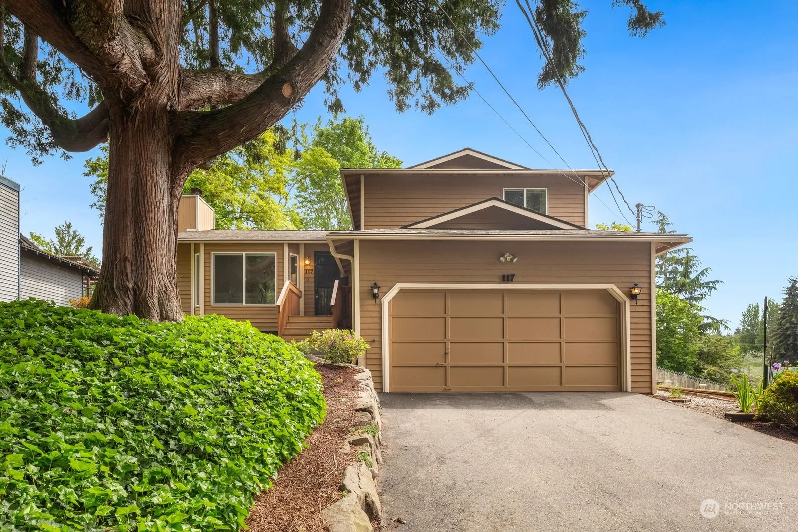 One owner, lovingly cared for 3-bedroom 1.5 bath tri-level Shoreline home w/ towering trees in low-maintenance yard. Open concept living room w/ vaulted ceiling, decorative fireplace, & wrap around kitchen w/ newer appliances. Newer carpet, LVT, vinyl, windows, applliances, electric panel & hot water heater. Fresh paint inside & out. Deck off dining room. Upper-level w/ 3 bedrooms & full bath; lower a family room bathed in natural light, high ceiling, laundry, ½ bath & access to large 2 car garage. Fertile west facing garden area from years of deep composting – veggies & flowers love it. Secluded deadend street & quiet friendly neighborhood. Shoreline schools. Convenient to I-5, 2 light rail stations, grocery stores, shopping. Welcome Home!