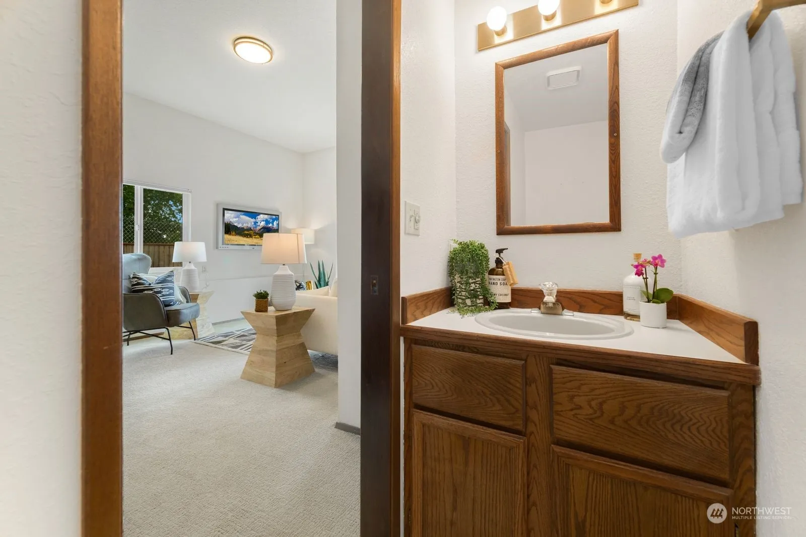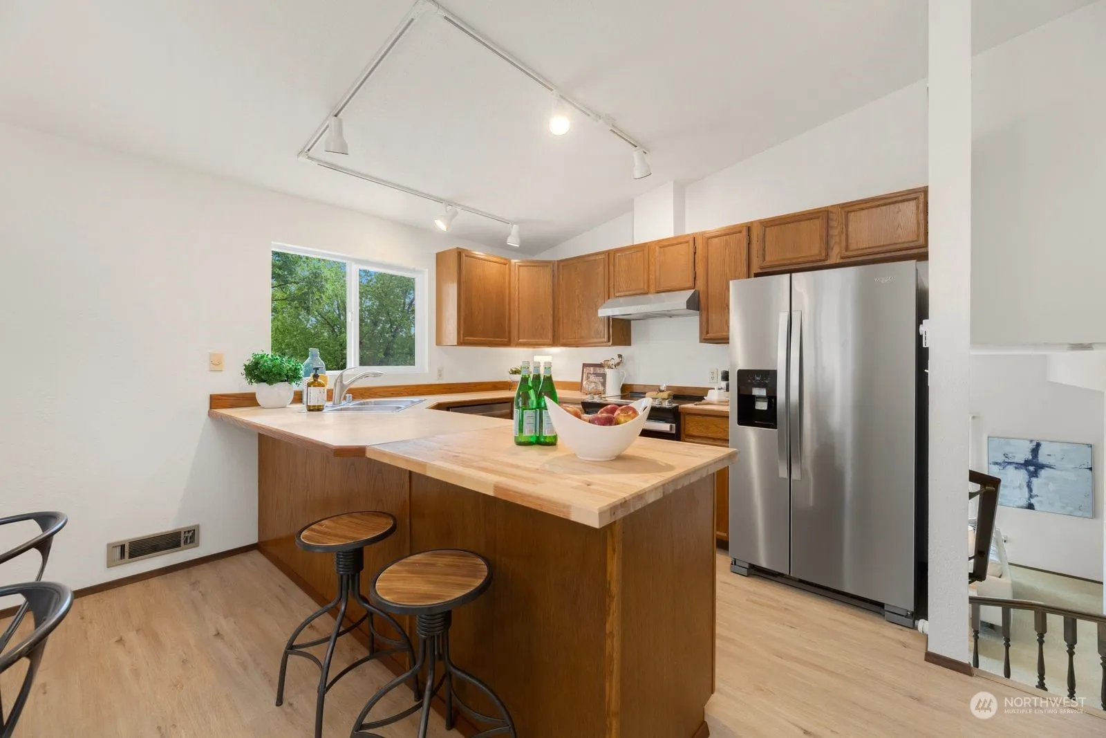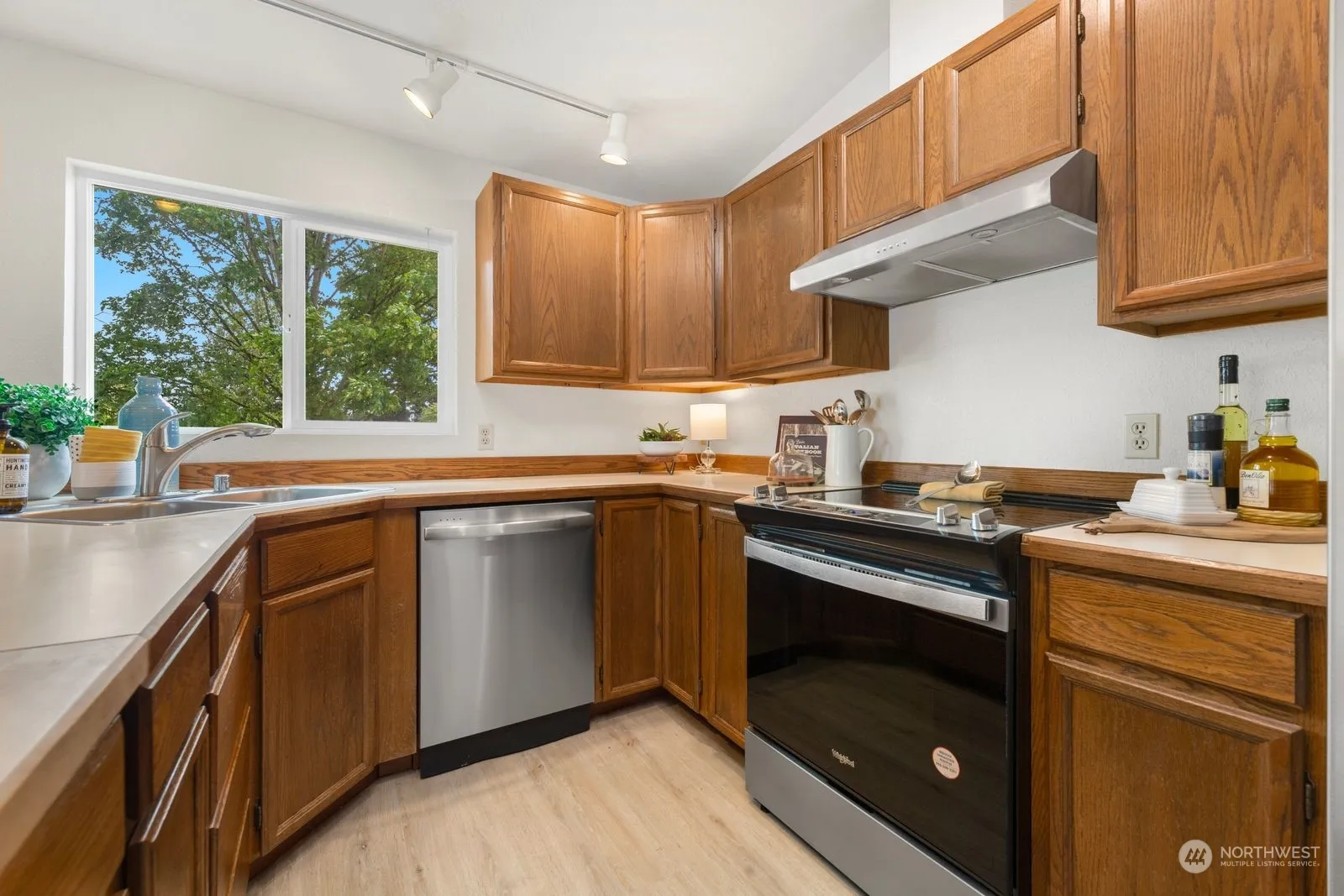 One owner, lovingly cared for 3-bedroom 1.5 bath tri-level Shoreline home w/ towering trees in low-maintenance yard. Open concept living room w/ vaulted ceiling, decorative fireplace, & wrap around kitchen w/ newer appliances. Newer carpet, LVT, vinyl, windows, applliances, electric panel & hot water heater. Fresh paint inside & out. Deck off dining room. Upper-level w/ 3 bedrooms & full bath; lower a family room bathed in natural light, high ceiling, laundry, ½ bath & access to large 2 car garage. Fertile west facing garden area from years of deep composting – veggies & flowers love it. Secluded deadend street & quiet friendly neighborhood. Shoreline schools. Convenient to I-5, 2 light rail stations, grocery stores, shopping. Welcome Home!