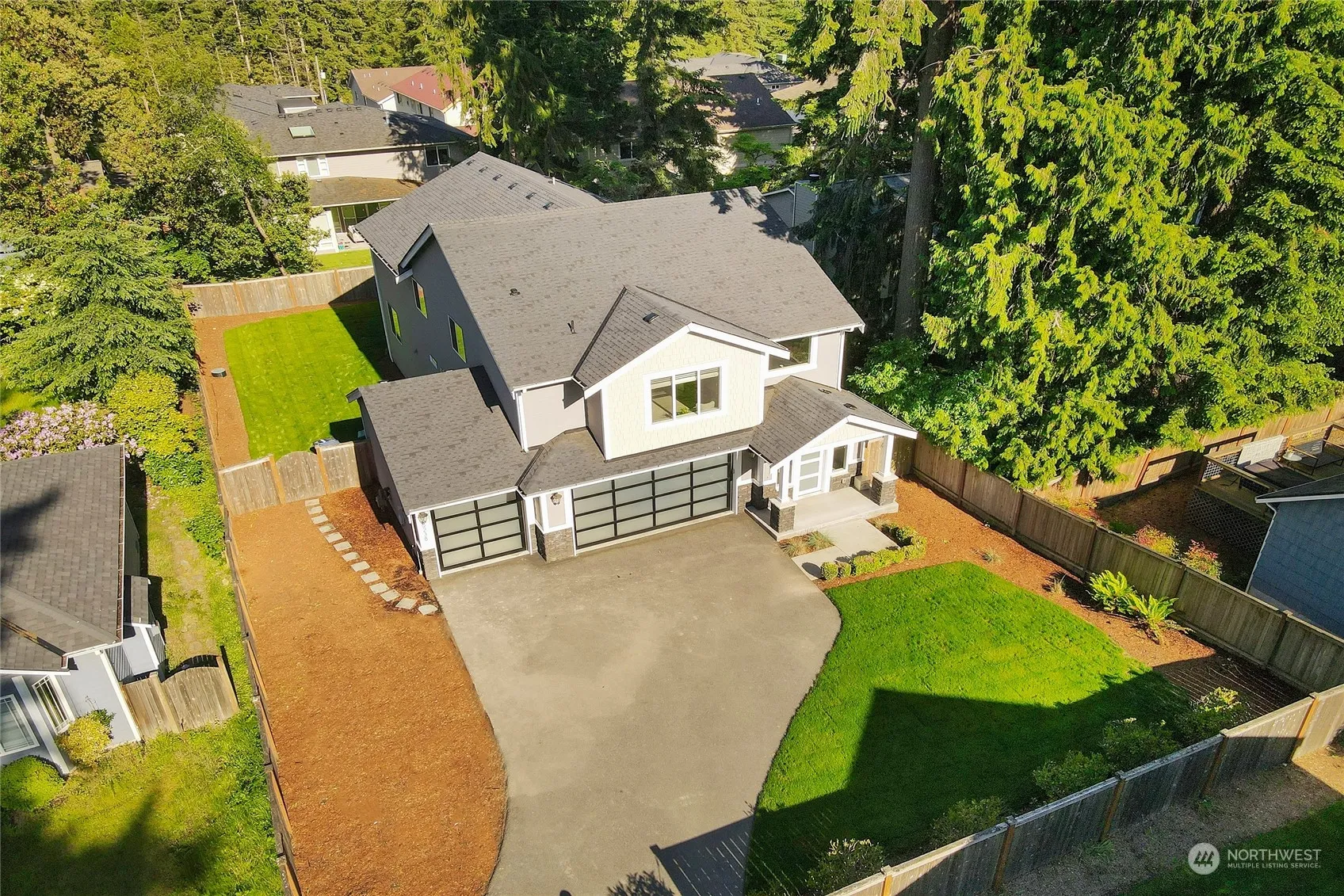 This stunning, meticulously maintained home feels like new, boasting 5 beds and 2.75 baths. 2017 Arcadia built home. Nestled away from the main road for added privacy. Open concept featuring hardwoods throughout the main floor and a gourmet kitchen equipped with SS appliances and a breakfast bar. Second floor offers a primary suite with a 5-piece bath and a walk-in closet. Three more bedrooms with bonus room and full bath, plus an upstairs laundry room. Outdoor living with gas BBQ and fireplace. Fully fenced yard featuring new, low-maintenance grass. Located close to the Interurban Trail, Seattle Golf Course, SCC, Shoreline place, town & Country Market, and award-winning Shoreline schools.Buyer to verify all information.