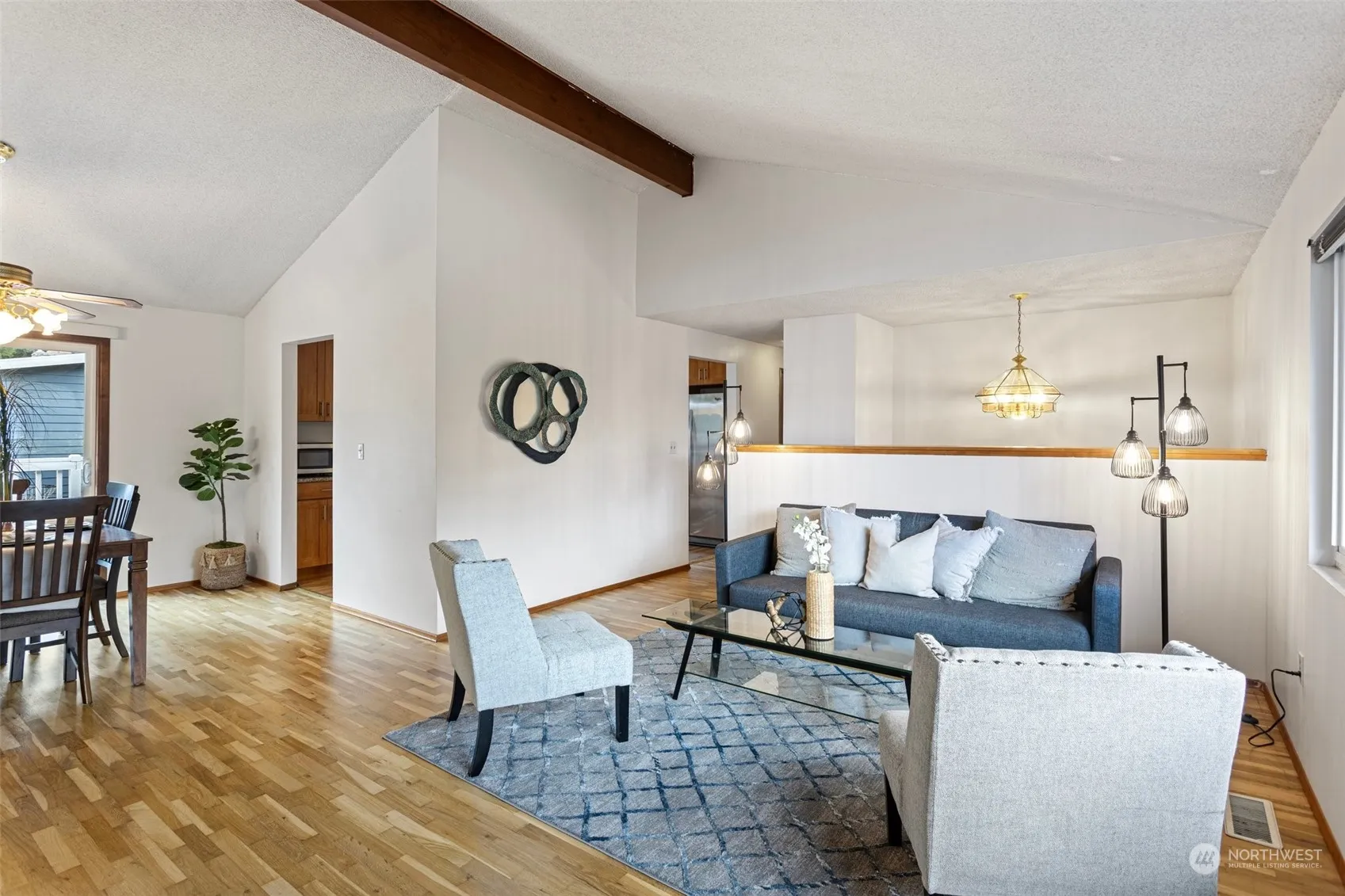 Hillwood offers easy access to shopping, freeway and bus routes. This house 4beds 1.75 baths boasts hardwood floors throughout both levels, along with cathedral ceilings in the living and dining areas. Fireplaces add coziness to both the living room and the lower-level recreation room. Outside, there’s a sunny deck off the dining area, perfect for entertaining. The large, fenced backyard features a raised vegetable garden, storage outbuilding and a separate dog run. Additionally, a side street entry with a 50-foot asphalted pad provides ample parking space for extra vehicles or recreational equipment.