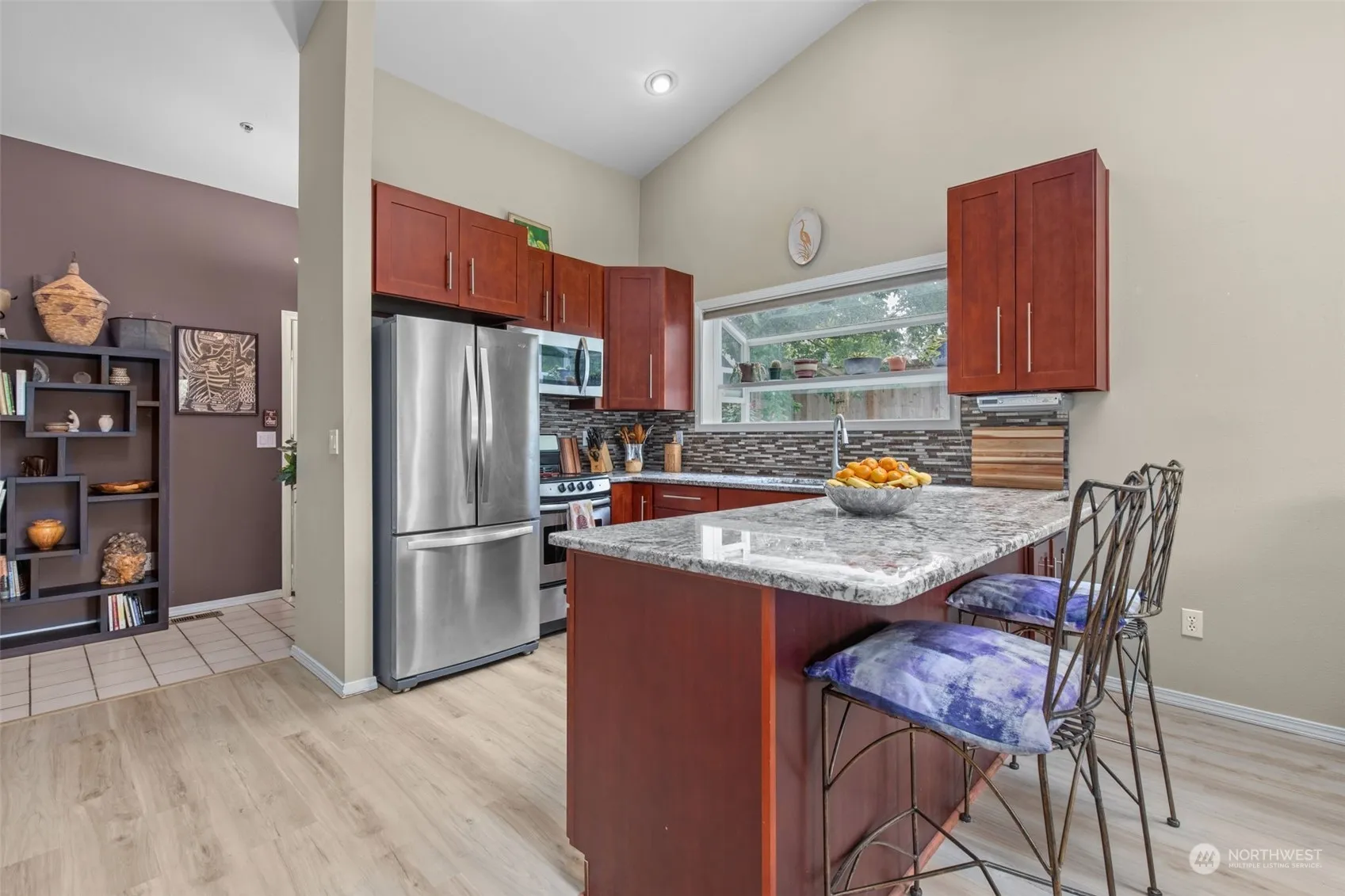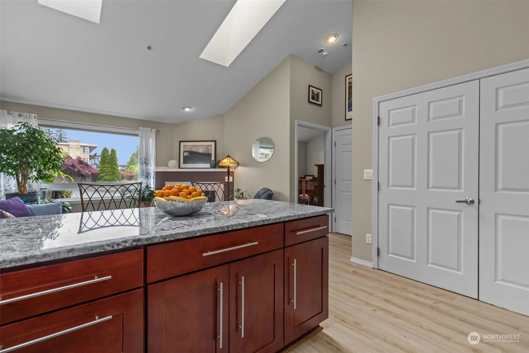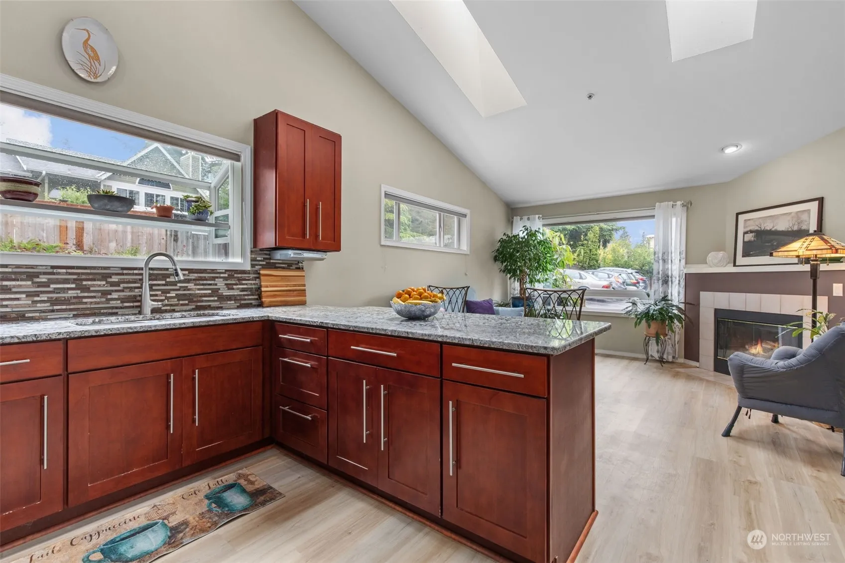 Welcome to this stunning 2 bed, 2 bath condo, the only single-level home in this pet friendly community! Nestled at the end, this gem offers privacy and tranquility. Vaulted ceilings and skylights bathe the space with natural light, creating a bright and airy atmosphere. The eat-in kitchen features a charming garden window and is perfect for casual dining and entertaining. Enjoy your morning coffee in the private garden area. This serene space is ideal for cultivating your favorite plants and vegetables. Also includes a washer and dryer, and offers ample storage throughout. Conveniently includes 2 parking spaces. Prime location near top dining spots, Costco, Edmonds Bowl, and easy access to I-5. Don’t miss out!