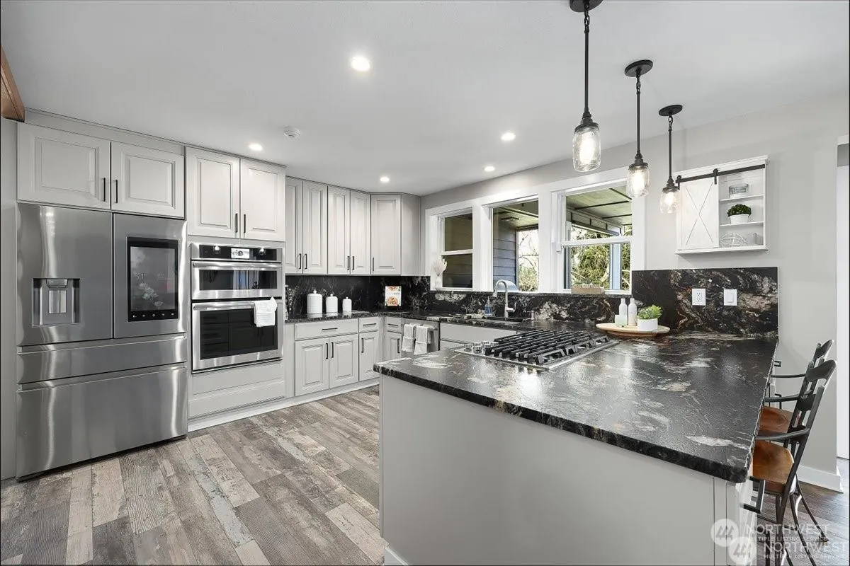 {Waterfront Luxury} Embrace every detail & escape to the shores of Lake Martha! Meticulously maintained, better than new, w/ modern elegance & impeccable design! Every detail has been crafted to elevate your lifestyle! Chef-inspired gourmet kitchen w/ high-end appliances, granite counters & custom cabinetry extending through dining room. Main living room w/ astounding lake views. Immerse yourself into a spa-like primary w/ built-in fireplace, custom WIC & spa-like en-suite! Versatile primary floor bedroom/office. Entertain your guests year-round on the covered deck Unlock the potential! Finished basement w/ kitchenette, bathroom & living space! Bonus space, custom dock, epoxied garage flooring & professionally landscaped yard!