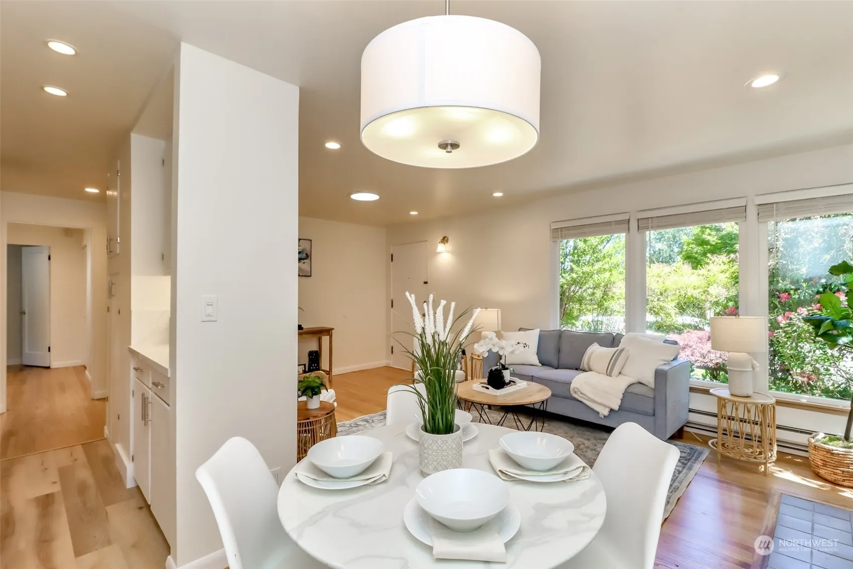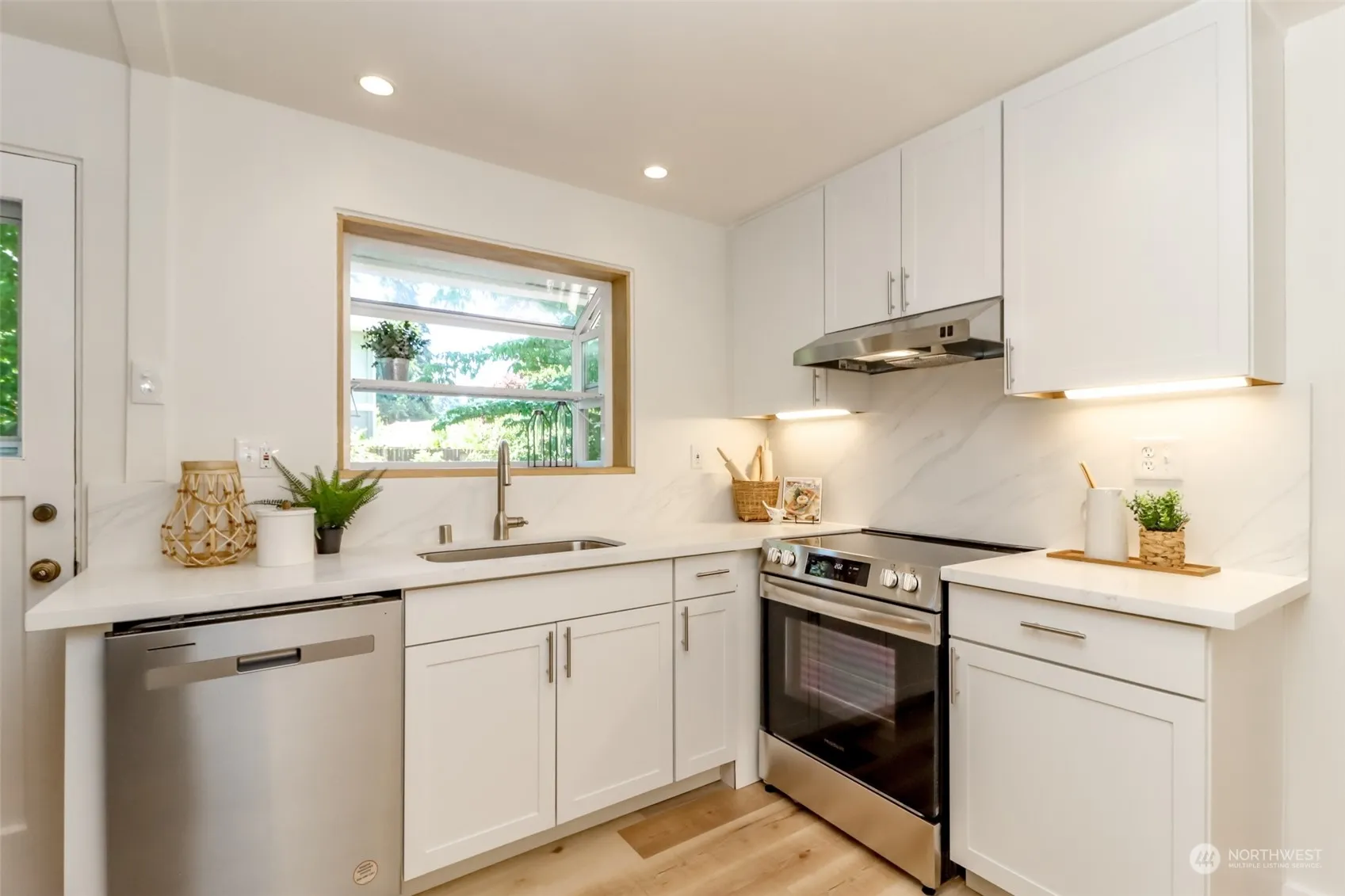 Welcome to your dream home, an updated rambler boasting impeccable interior renovations. Step inside to discover fresh new interior paint, complemented by a beautiful kitchen and updated bath. All brand-new, the appliances stay for your convenience. The elegance of beautifully refinished Oak hardwood floors flow seamlessly throughout. Outside, indulge in the grandeur of a phenomenal yard, featuring a picturesque entryway fountain, majestic trees, and mature landscaping. The expansive back deck is an entertainer’s paradise, perfect for hosting or enjoying serene moments in your oasis. You’ll enjoy unparalleled convenience with easy access to transit, including the upcoming light rail, nearby amenities, lush parks, and I5.