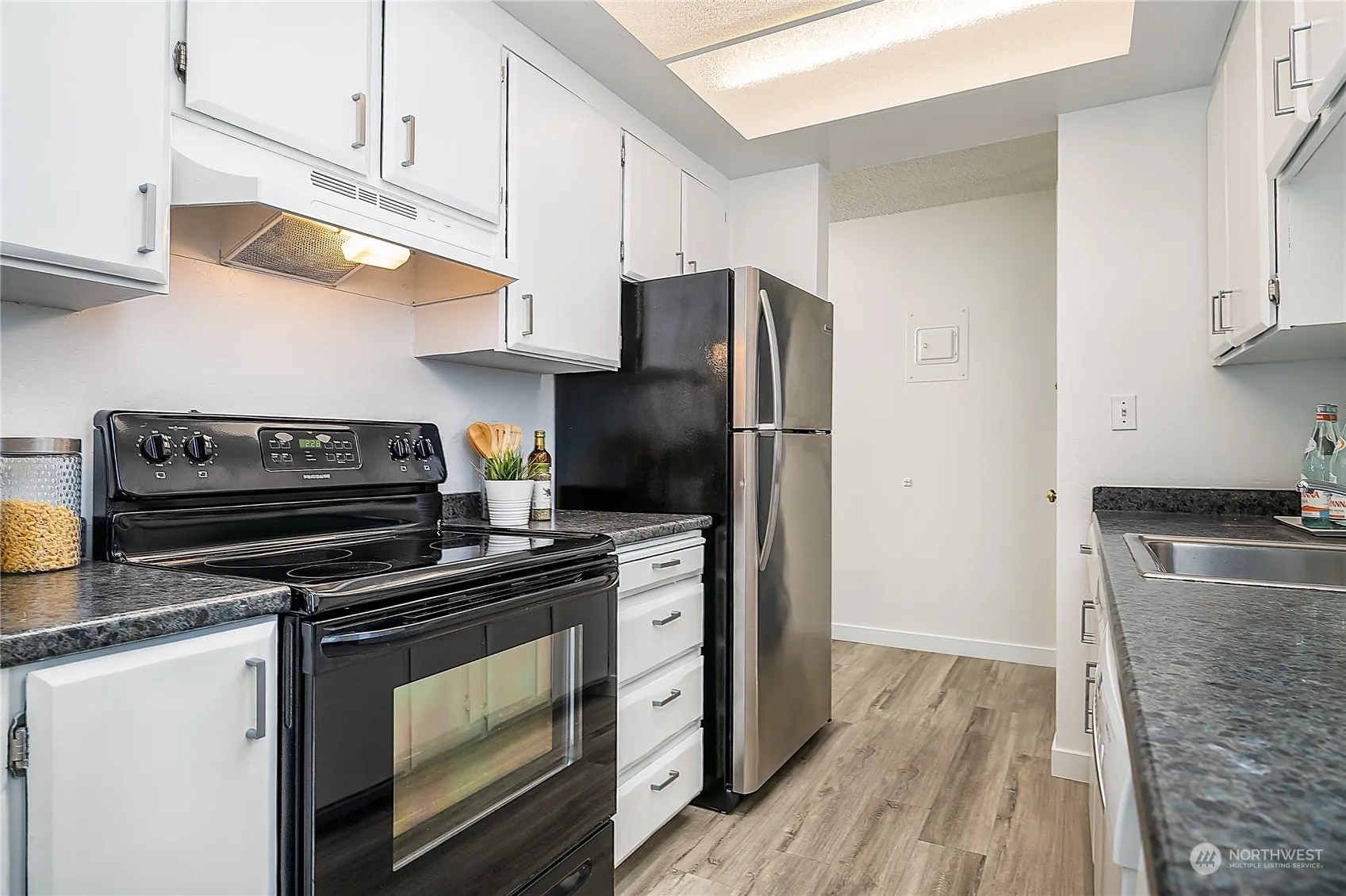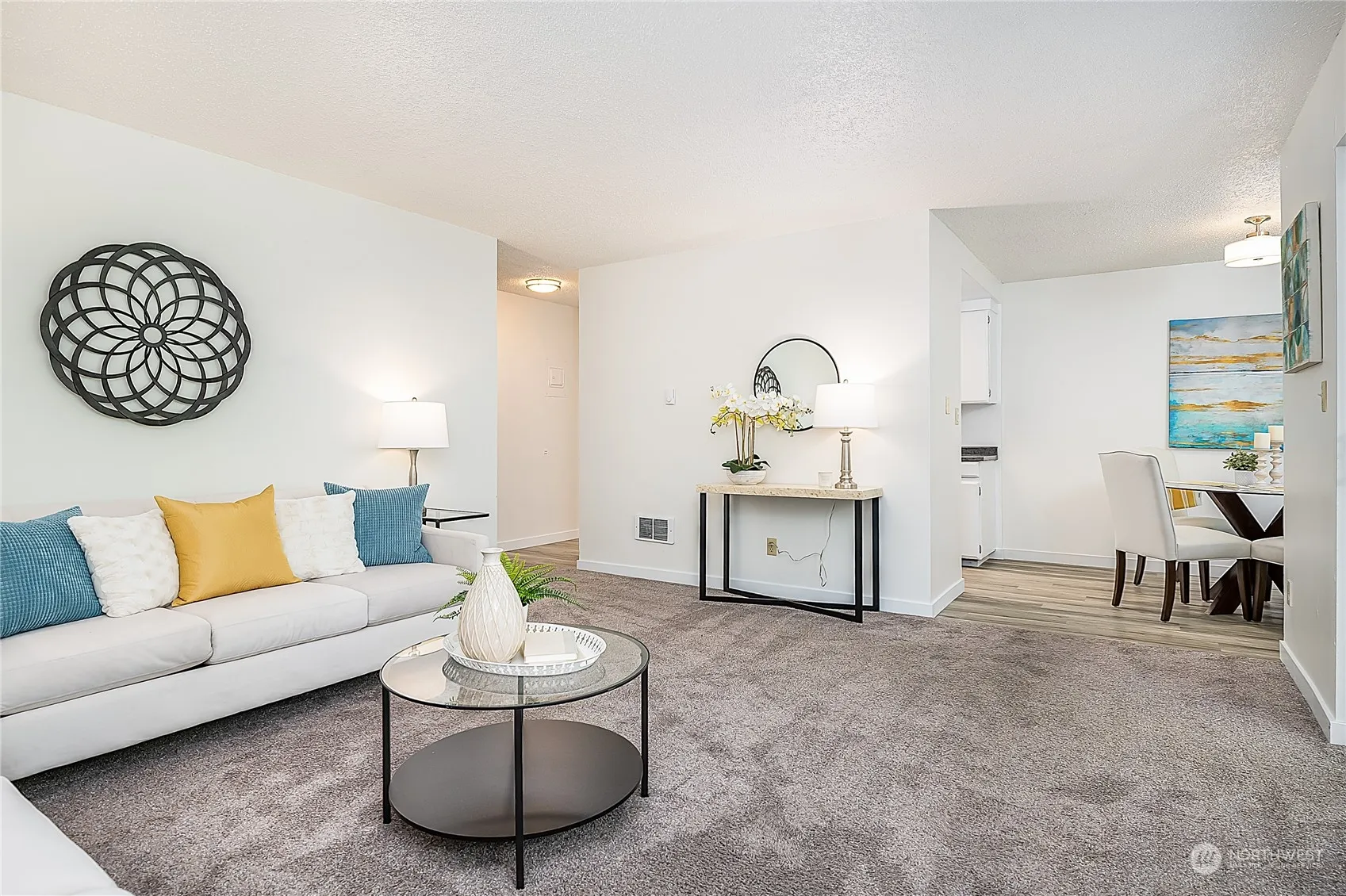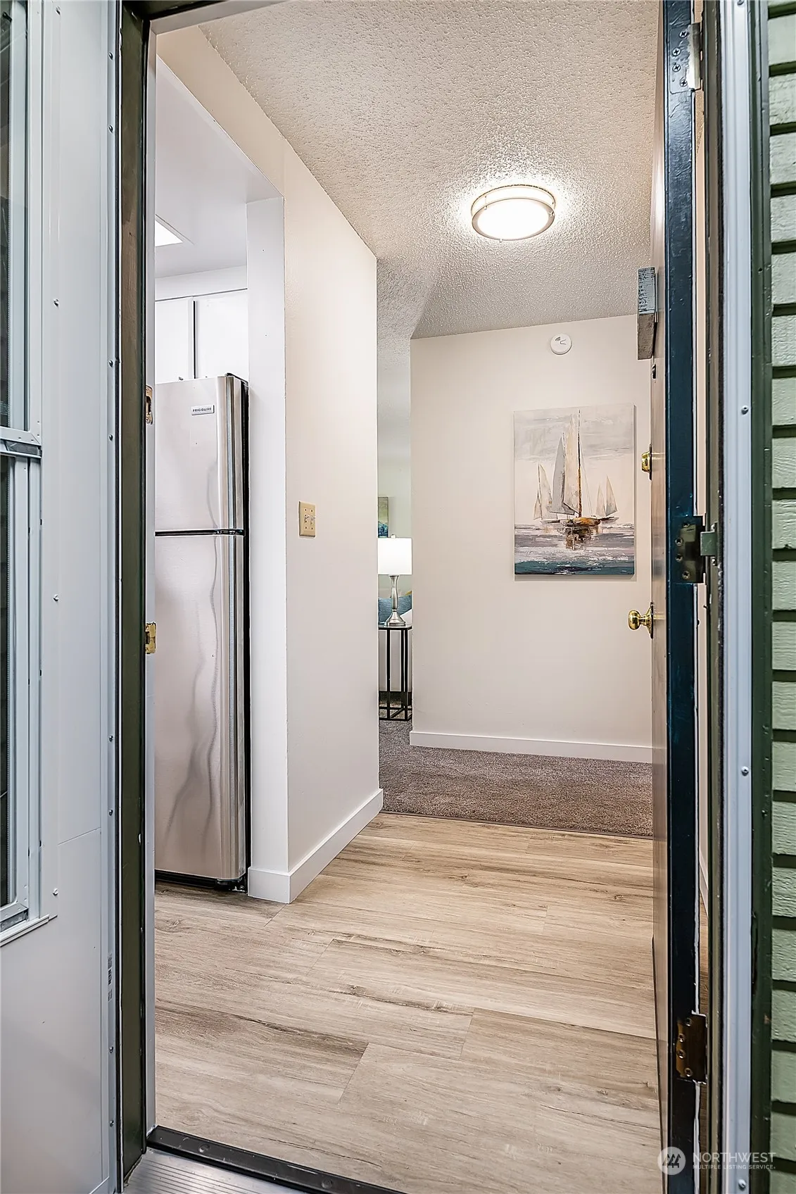 Enjoy the Richmond Beach lifestyle! Located just up the hill from the Saltwater Park and adjacent to Hillwood Park, this two-bedroom condo offers simplicity, comfort, & fun. With only one shared wall, this end unit provides coveted privacy: Unwind in the spacious living room that opens to the patio & garden space with lush greenery. Galley kitchen and dining area provide functionality, while the large primary suite boasts huge double closets. Fresh paint, newer vinyl windows, carpets, and LVP flooring make this home move-in ready. Well maintained HOA provides peace of mind to relax by the pool on lazy summer days. Two separate storage rooms offer space for off-season items. Experience the ease of coastal living. Pre-Inspected. Welcome Home!