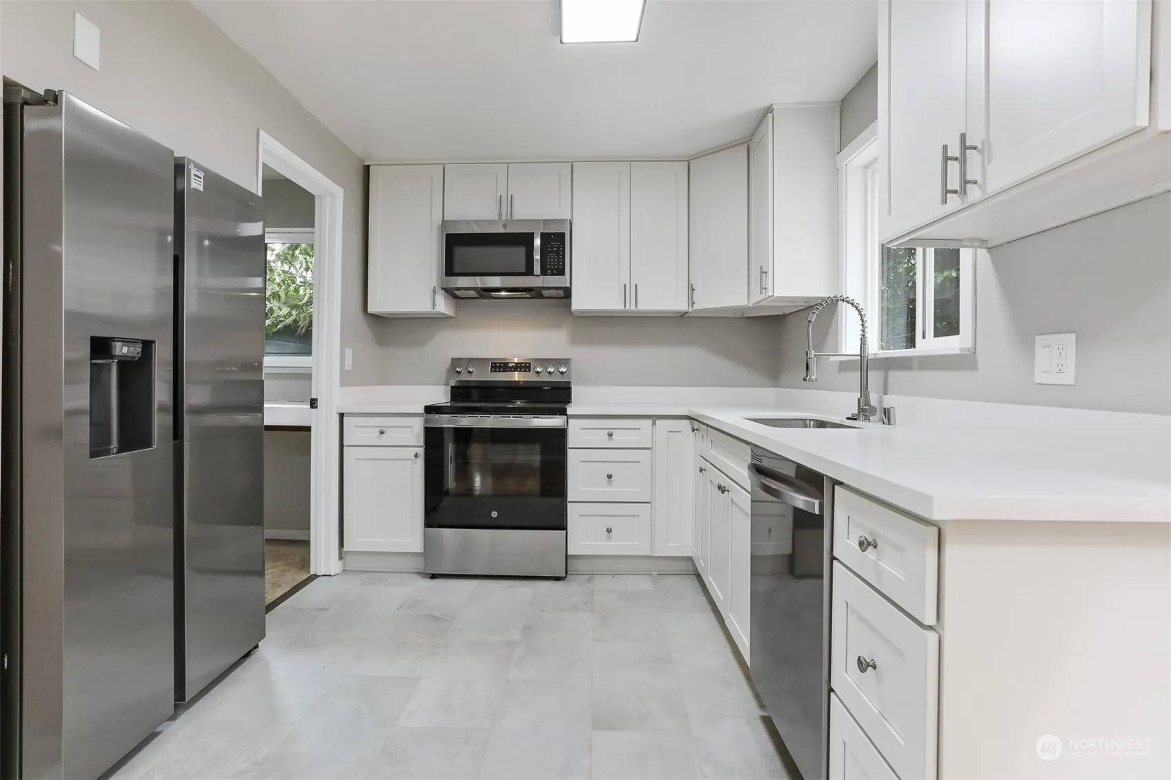 Great Investment Opportunity! Perfect starter home! Rental? Zoning (R24) is for higher density. Directly across the street from Richmond Highlands Park (soon to be completely redone). Come see this 3 bedroom, 1 bathroom home with new roof, completely remodeled kitchen and bathroom, newly landscaped yard, fresh paint, new sewer line and more. Hardwood floors, throughout. Private back patio just in time for Summer BBQ’s. Just 1 block from coveted Shorewood High School. Just minutes from the new Shoreline light rail station, Town & Country Market, Trader Joe’s, Costco, Home Depot, Sky Nursery and all of Shoreline and the City of Edmond’s great amenities. Come see!