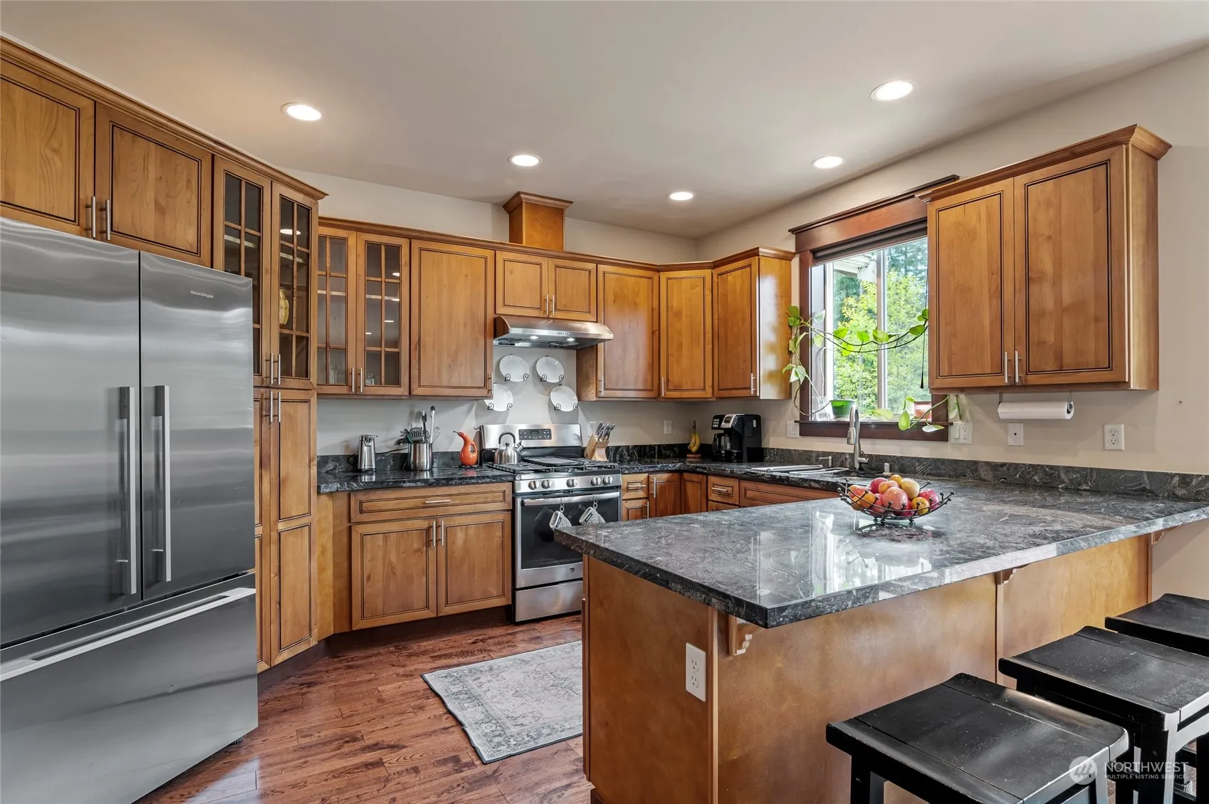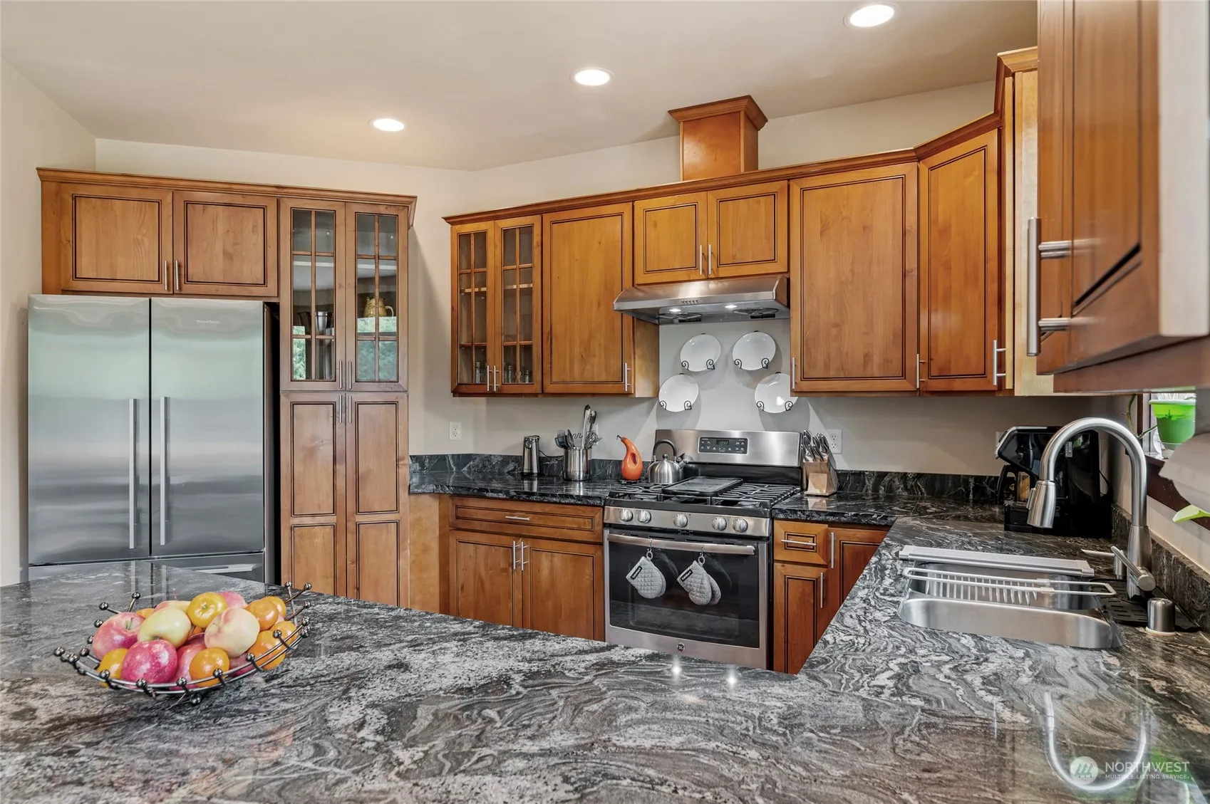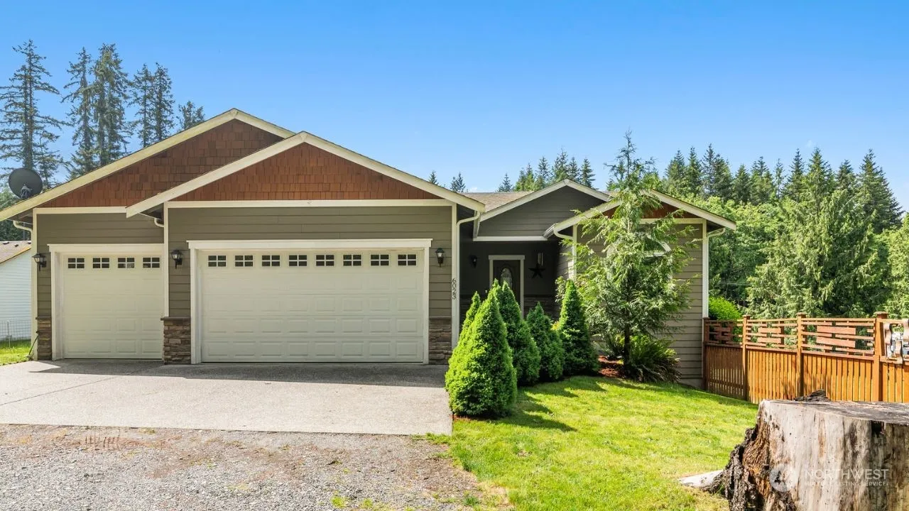 PRICE REDUCED! Daylight Rambler with [ADU LIVING OPTIONS] is situated down a quiet private drive on just over an acre. Spacious open floor plan with 9-foot ceilings, custom millwork, and a cozy gas fireplace. The gorgeous kitchen features an eating bar, stainless steel appliances, granite countertops, and tile backsplash. The main floor offers a large primary suite with a walk-in closet, jetted tub, and spacious shower. Downstairs provides a separate entrance w/two more generous bedrooms, a full bath, and a huge bonus room. Leafless gutter system and generator too! Huge fully fenced backyard, The 3-car garage provides ample space for your RV and toys. Conveniently located minutes from I-5, shopping, Lake Goodwin & more!