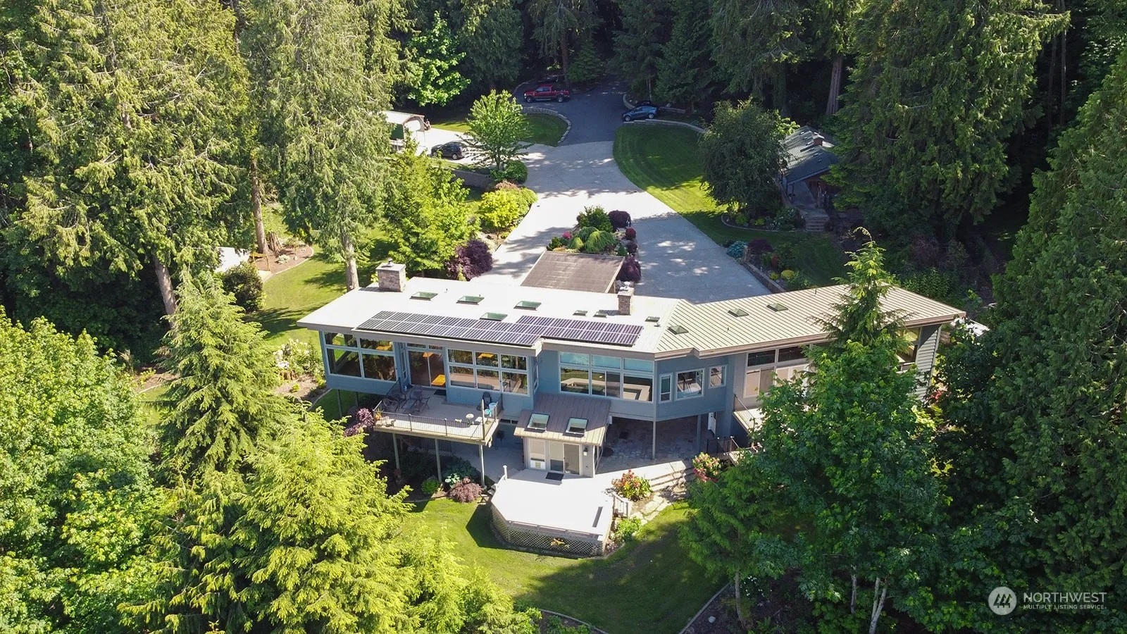Private, secluded home remodeled in 2014. Open floor plan & sweeping views. Kitchen boasts an island, bar, walk-in pantry, & elevated deck. The primary bedroom has walk-in closets w/organizers. Primary bath with a claw foot tub & separate toilet/shower. Large media room with wet bar and deck. Office and workout room. Hardwood floors, carpeted rooms & skylights. Ductless heat, 32 solar panels, wood-burning fireplaces, wired generator, & water filter system. Wired and plumbed for a mother-in-law kitchen downstairs. Gated community. 3-car garage. Porte cochiere covered entryway. Water feature, 4-stall barn, fenced areas, & storage sheds. Beautifully landscaped grounds with lawn curbing and a full irrigation system. Must see to appreciate.