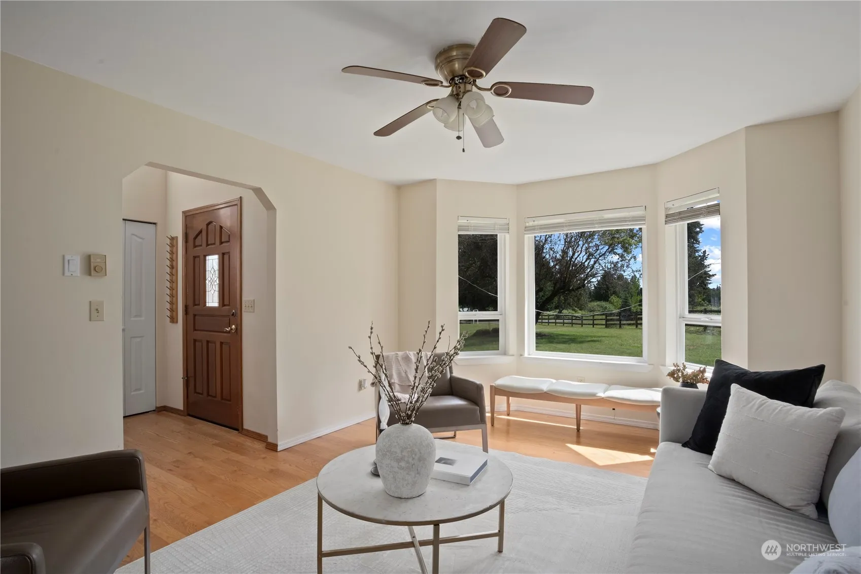 Discover this charming 3 bedroom, 2.5 bath home set on over 3 acres in Stanwood! Featuring a recently updated kitchen and bathrooms, this home offers a comfortable and modern living experience. The first floor boasts a cozy living room, formal dining, spacious great room, large utility room, and well equipped kitchen featuring shaker cabinetry, granite countertops, and stainless steel appliances. All three bedrooms are conveniently located on the upper floor, ensuring ample privacy. Walk outside and enjoy the bounty of fruit trees, a large deck perfect for summer BBQs and relaxation, and an incredible shop and studio. Located within the Lakewood School District, this property combines rural charm with modern amenities!