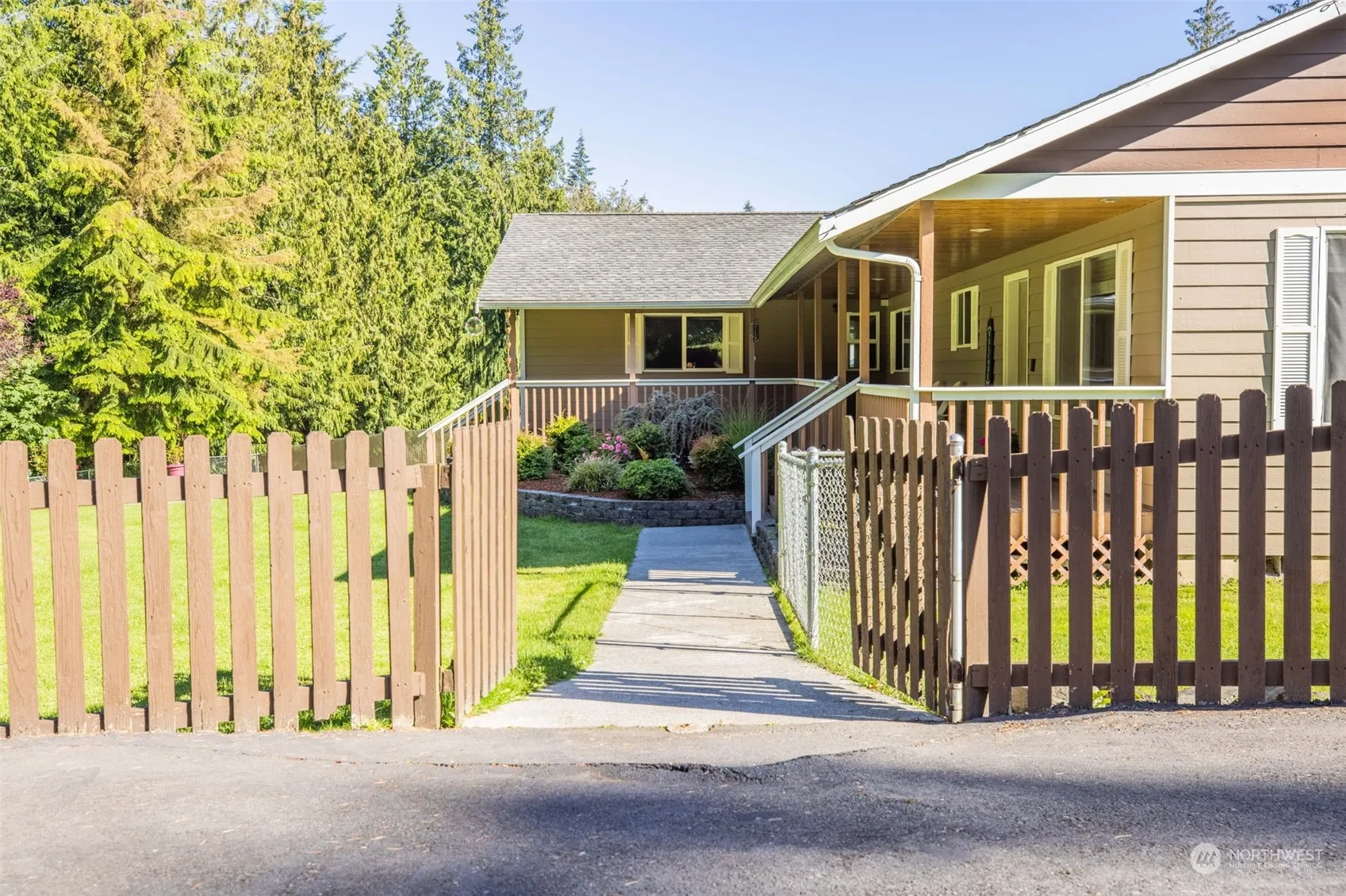 Welcome to this spacious rambler situated on over 1.5 acres. As you approach, you are greeted by a covered front porch, perfect for enjoying your morning coffee. Step inside this 4 bed/3 bath home and be captivated by the inviting family room with vaulted ceilings and a stunning river rock fireplace. The open layout seamlessly flows into the back patio, ideal for entertaining or simply unwinding after a long day. Fully fenced 1-acre portion of the property features fruit trees, mature landscaping, providing a private oasis for relaxation. The circle driveway offers ample parking space, the detached garage/shop offers covered RV parking w/ 30amp outlet. This property offers the perfect blend of comfort, functionality, and outdoor beauty.