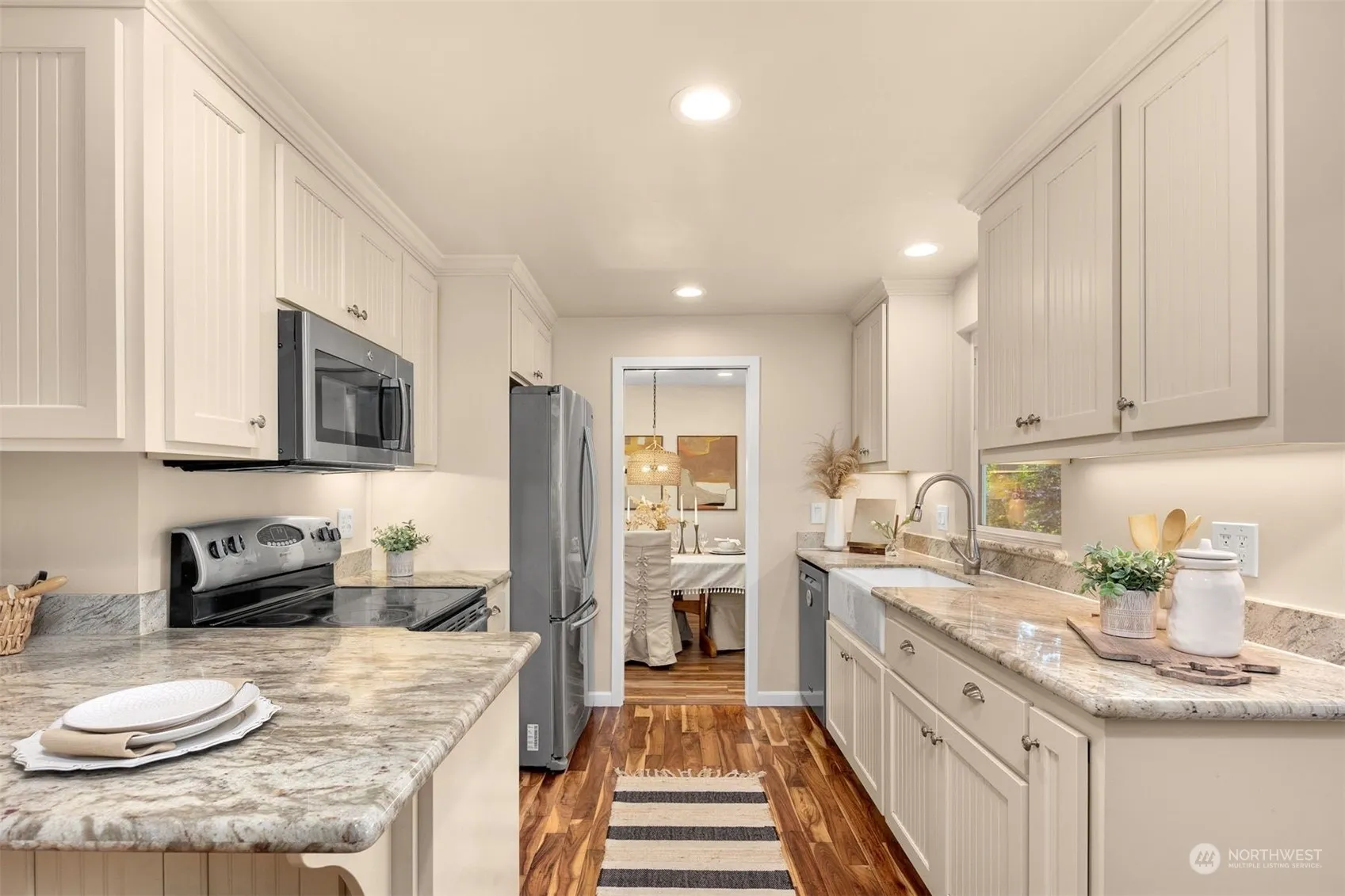 Experience the ultimate lifestyle in the coveted Richmond Beach community w/ this fully renovated sanctuary, featuring a brand-new master wing addition completed in 2023. Indulge in a luxurious spa-like ensuite w/ a soaking tub, walk-in shower, heated floors, & spacious walk-in closet. The master bedroom has cathedral ceilings & ample space, offering a serene retreat away from the rest of the house. The addition includes a sunroom w/ natural light that leads to a sprawling backyard perfect for entertaining, play, and it is completed w/ a hot tub. The home is meticulously updated w/ new windows, roof, flooring, & paint. The lower level offers ADU potential w/ lots of flex space. This home blends tranquility & convenience.