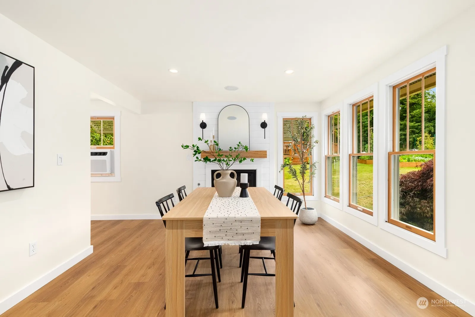 Discover the perfect blend of convenience and charm in this delightful bungalow, just 2 blocks from the new Shoreline light rail station. Enjoy new flooring, fresh paint, stylish trim, modern fixtures, and brand-new appliances. Features include hardwood floors, premium windows, a whole-house ventilation system, and an integrated speaker system. The spacious family room offers stunning views of the expansive backyard, perfect for entertaining. A 50-year roof with a transferable warranty ensures peace of mind. The heated, detached garage may be converted to and ADU, and the additional outbuilding invites you to create a personal retreat. With ample off-street parking and nearby shopping, this home seamlessly combines comfort and practicality.