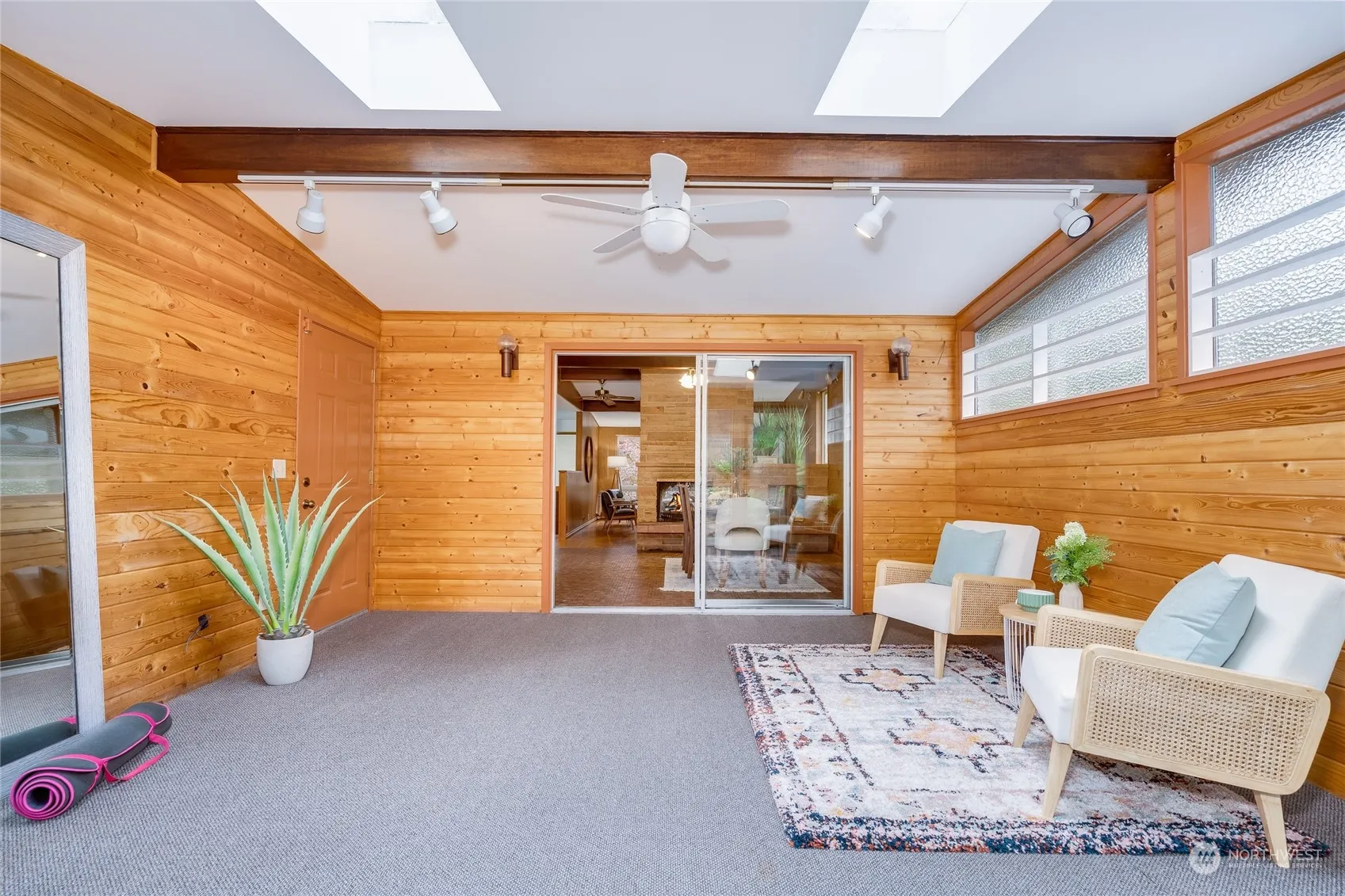 Unique opportunity to own this iconic Parkwood Mid-Century Modern custom-built home. Situated on a spacious corner lot, this home offers easy access to the new Link Light Rail station at 148th and various community destinations. This stunning home features an open layout with original MCM details, including a central wood-burning fireplace, hardwood floors, beautiful wood paneling, and exposed beams. A sunroom seamlessly connects the main living area to a level back garden, perfect for your creative touch. The main floor boasts 3 bedrooms, while the lower level includes a potential 4th bedroom/rec room and a separate office. An oversized 2-car garage, ample storage, and a carport off N 150th St complete this generous and unique property.