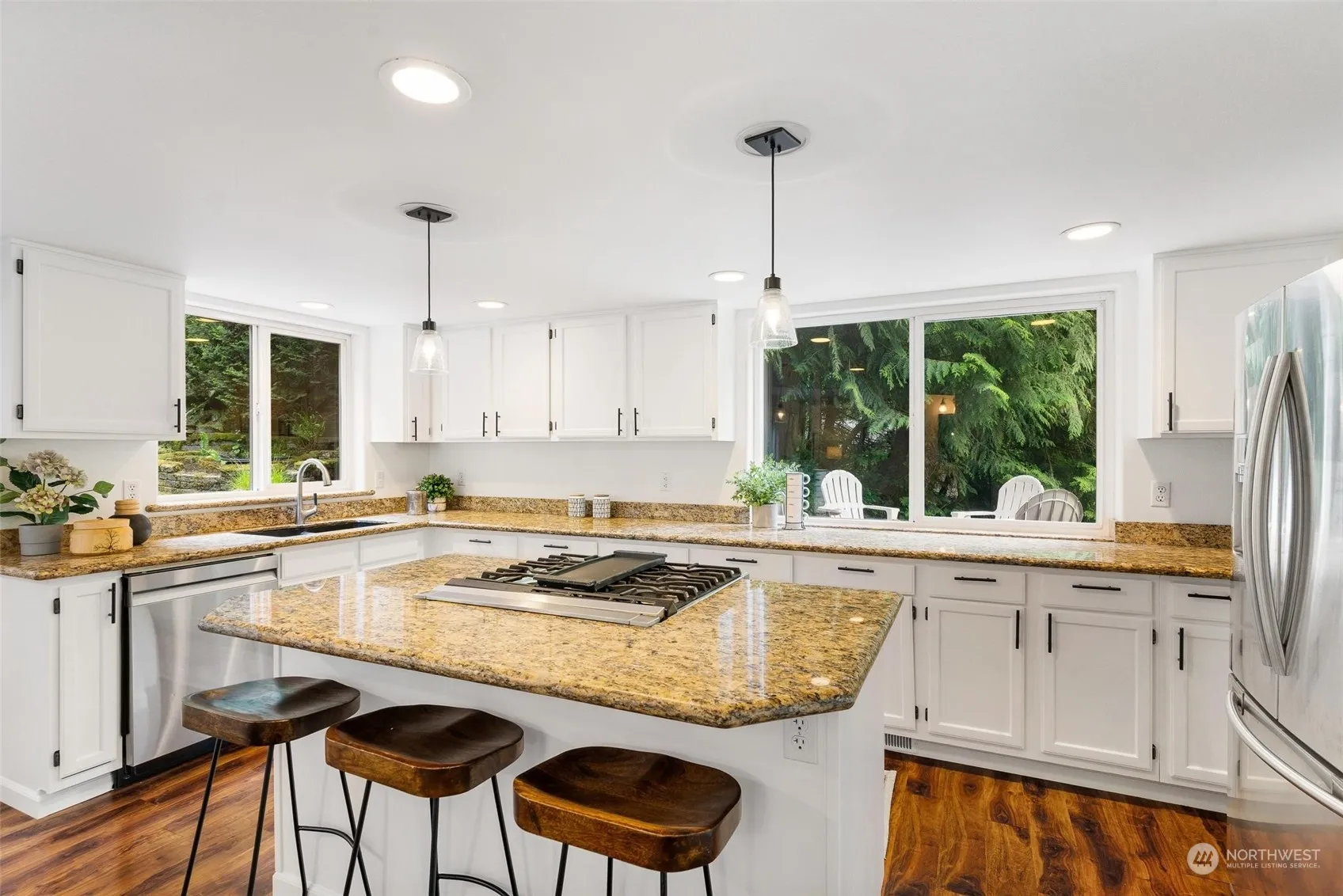 Move in ready 3-bedroom home on 3 acres. Just bring your toothbrush! New carpet/fresh paint/new roof in 2017. Large cook’s kitchen boasts 17′ of slab granite/prep space, SS appliances. Large, detached shop/garage offers a space for hobbies with wood stove. Ample parking for toys/RV. Enjoy the waterfall/pond from your deck and watch nature unfold around you. Peaceful, park-like setting. Situated between Stanwood and Lake Goodwin, just a few minutes from Warm Beach, shopping and restaurants. Welcome home!