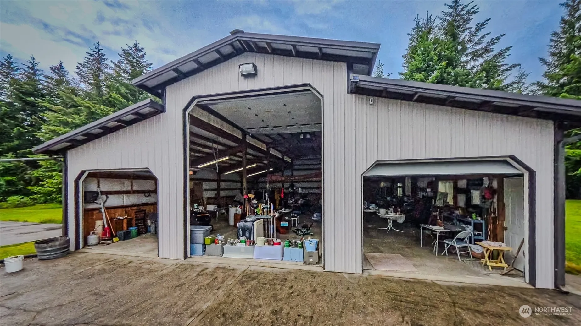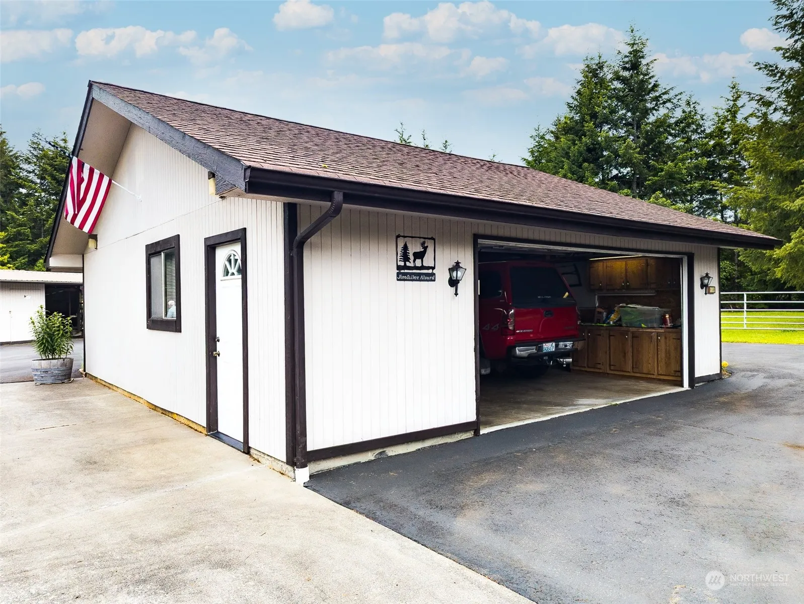 Welcome to your dream home! This charming 3 bed, 2 bath manufactured home is on just shy of 5 acres, offering a serene & spacious retreat. The property features a detached two-car garage w/thermostatic heat, insulation, large barn has commercial wiring, tons of storage, and cedar-lined walls. RV height door & two additional garage doors for extra vehicle storage.There’s also an old barn perfect for animals. Enjoy partially fenced grounds, scenic pathways, a cozy firepit, a picnic/BBQ area, & a fenced veg. and fruit garden. The updated home boasts an open floor plan, large laundry room/walk-in pantry, heat pump, propane, & wood fireplace. Relax on the large covered front porch or the partially covered back porch. Your tranquil oasis awaits!