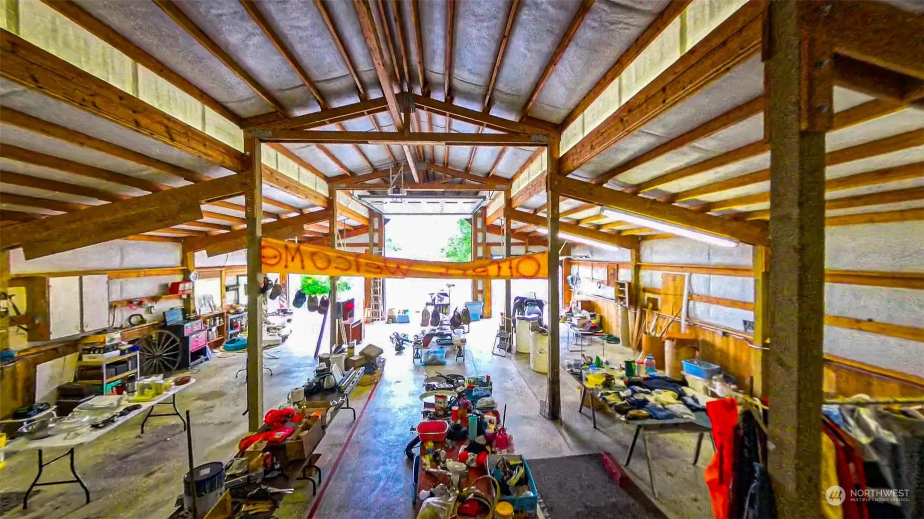 Welcome to your dream home! This charming 3 bed, 2 bath manufactured home is on just shy of 5 acres, offering a serene & spacious retreat. The property features a detached two-car garage w/thermostatic heat, insulation, large barn has commercial wiring, tons of storage, and cedar-lined walls. RV height door & two additional garage doors for extra vehicle storage.There’s also an old barn perfect for animals. Enjoy partially fenced grounds, scenic pathways, a cozy firepit, a picnic/BBQ area, & a fenced veg. and fruit garden. The updated home boasts an open floor plan, large laundry room/walk-in pantry, heat pump, propane, & wood fireplace. Relax on the large covered front porch or the partially covered back porch. Your tranquil oasis awaits!