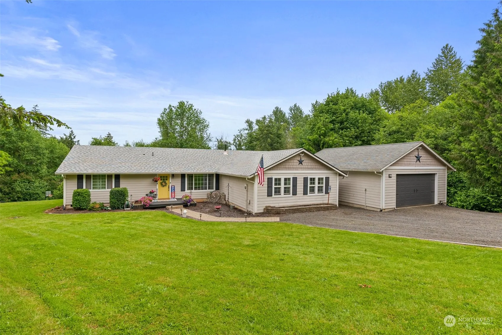 Secluded home in the Adna School District. This home has 3 bedrooms with 2.5 baths at a comfortable 2208 sqft. Kitchen is open space with a large living areas on both sides. This home is built so you could actually have two primary bedrooms on the opposite sides of the house. The detached 2 car garage/shop is all sheet rocked and heated with plenty of room for someone with a hobby. The 2.2 acres is plenty of room to roam around or work with a horse in the arena. Plus a large shed w/lean-to for extra storage. Additional storage can be found in the unfinished basement to handle all your extra storage items. The home site is nicely landscaped and secluded. Sit back and enjoy off the large deck overlooking below.