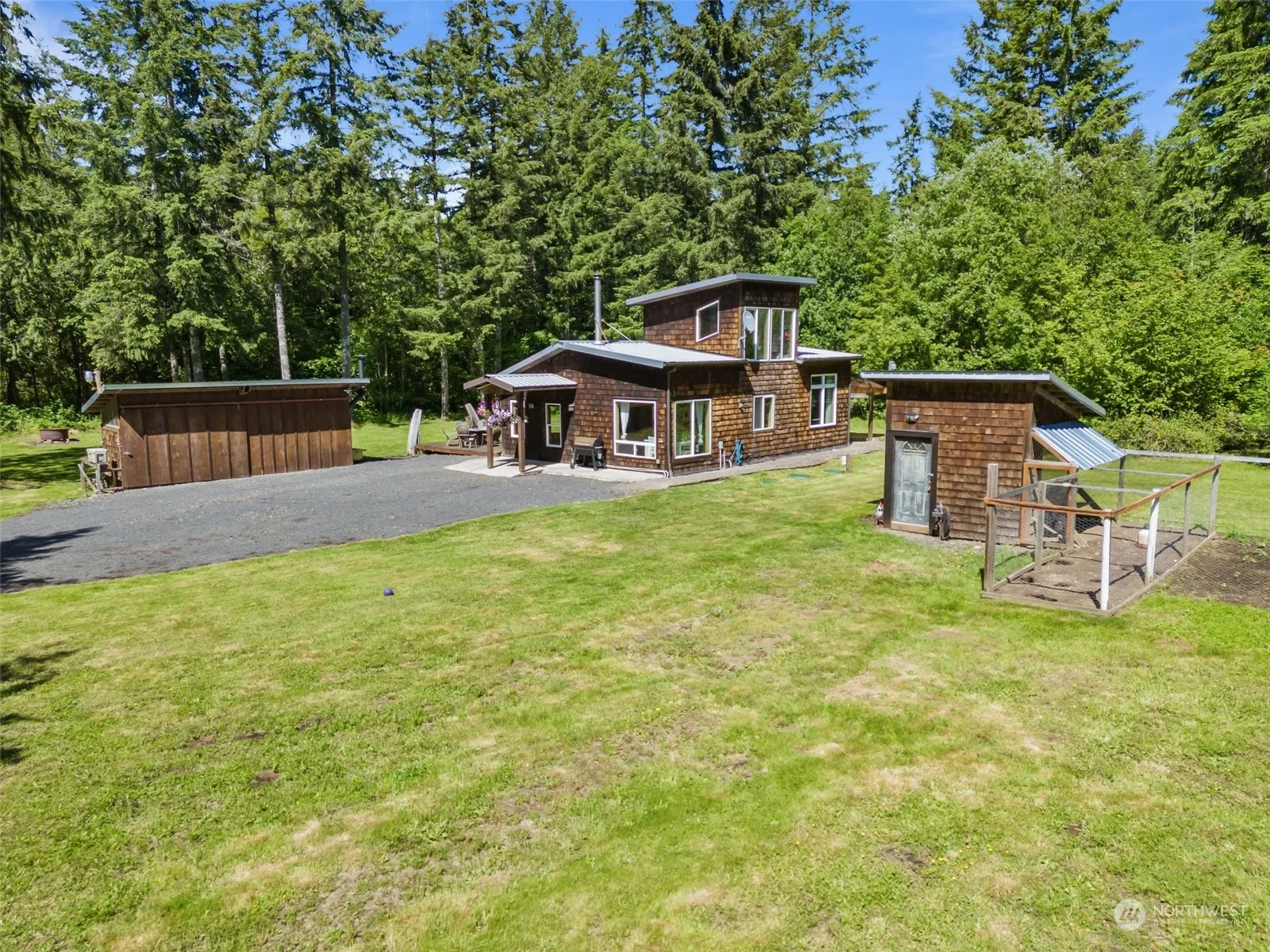 This home has been very well taken care of. Low-maintenance landscaping with lots of outbuildings on a peaceful 5 acres includes a chicken palace! Inside you will find a great living space including custom cabinets in the kitchen with a large dining area. Main floor bedroom with lots of storage, second bedroom upstairs also has ample storage. Don’t let the square footage on this one fool you, home feels much larger! Fiber optic internet just installed making working from home in your cozy cabin a breeze and it is only minutes from I-5. You must see this quiet property on dead-end road. Bonus the lawn mower can stay!