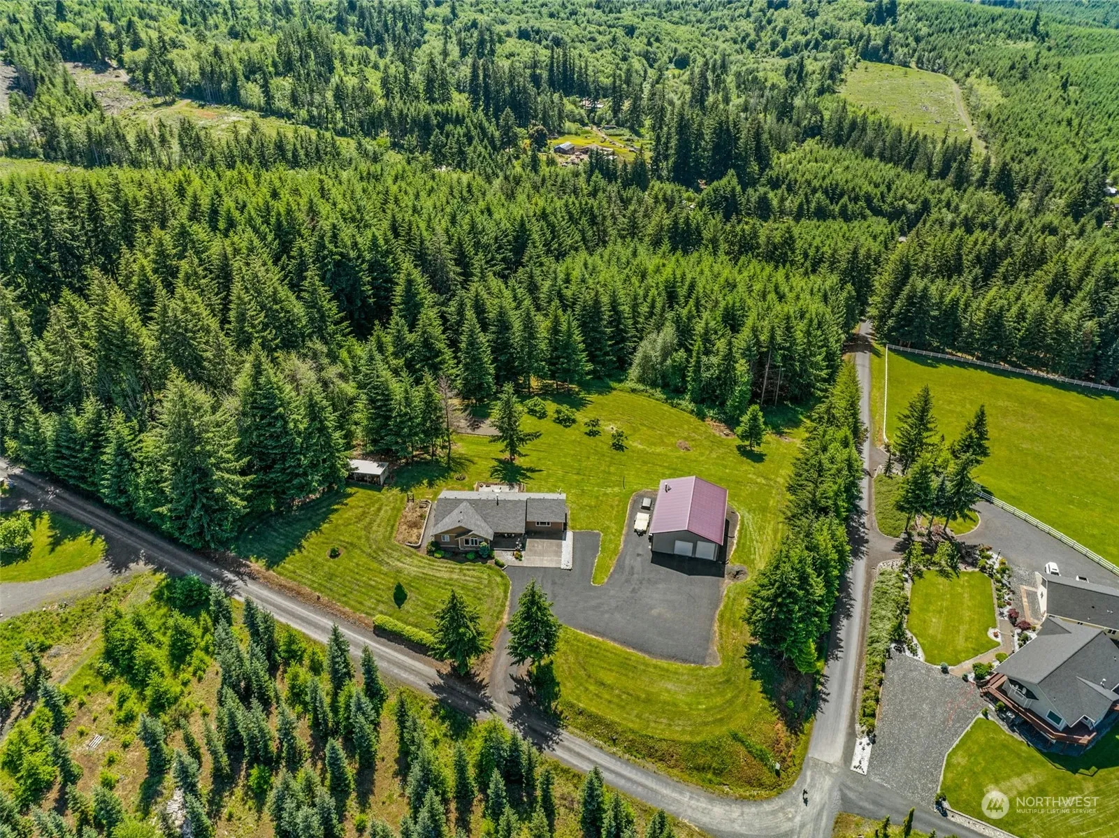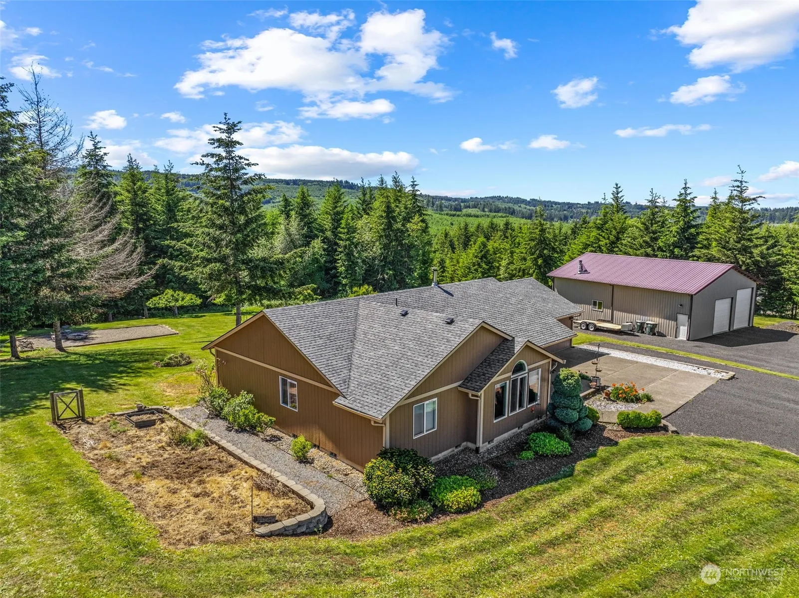 With majestic mountain views atop a corner lot on a private drive this home’s tranquil country vibe is the perfect place to hang your hat! Situated on 5 acres of marketable timber, lush grass acreage, bountiful garden space, & outbuildings galore. The colossal shop is 36×48, fully insulated, & lined with cabinets, a woodstove & bathroom. Make no joke, it’s a dream come true! The house is spaciously designed w/ an open-airy concept yet allows for a blend of quiet & active living at 2160 SF, 4B/2B, & a ginormous FR. Recent updates: LG kitchen appliances & exterior paint (23) & roof (20). Chip-sealed driveway, woodstove, AC, 2 laundry rooms, & private primary suite w/ WIC. Bonuses: firewood, chicken coop, & kennel. Exclusively for you!