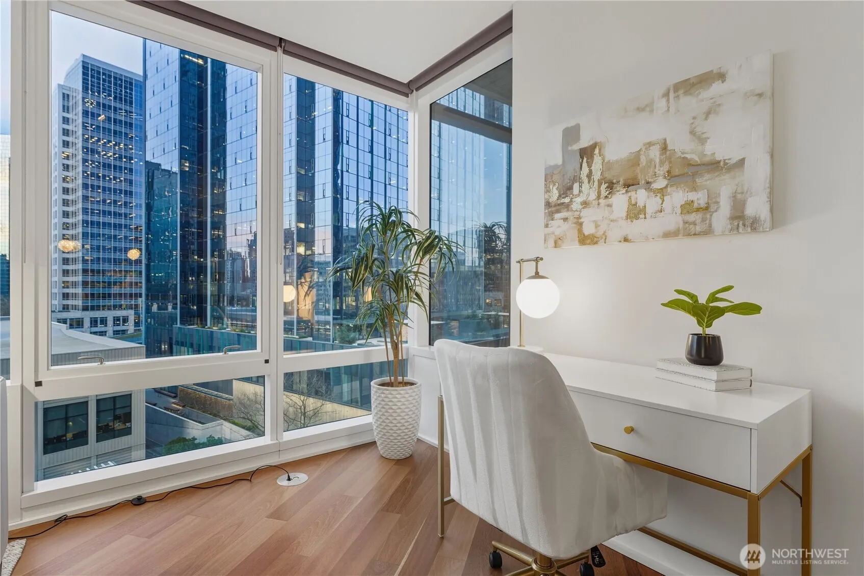 Live at the crossroads of convenience and luxury in Bellevue Towers. This refined 1-bedroom, 1.5-bath residence offers the ultimate urban lifestyle—whether you’re a tech professional seeking a work-from-anywhere sanctuary or ready to embrace maintenance-free living that puts experiences first. Floor-to-ceiling windows and 9-foot ceilings create an airy, light-filled space with striking city views. Hardwood floors flow throughout, leading to a chef’s kitchen with premium appliances, custom cabinetry, and an open layout that transitions seamlessly to your living area. An oversized primary suite provides tranquil retreat with spa-caliber bath. Your private balcony extends living space outdoors. Amenities transform daily routines into elevated experiences: 24/7 concierge service, resort-style fitness center, whirlpool spa, sauna, private screening room, dog park, and rejuvenating outdoor terraces. Secure parking. Outside, Bellevue’s finest surrounds you. Walk to Amazon and Microsoft. Explore Bellevue Square’s 200+ shops and award-winning restaurants—from casual pho to Michelin-worthy dining. Stroll Bellevue Downtown Park’s fountains and gardens. Catch performances at Meydenbauer Theatre. Access light rail and buses. This is intentional living: less time maintaining, commuting, and planning—more time for what matters. Whether climbing the career ladder or enjoying well-deserved freedom, Bellevue Towers delivers the lifestyle you’re looking for.