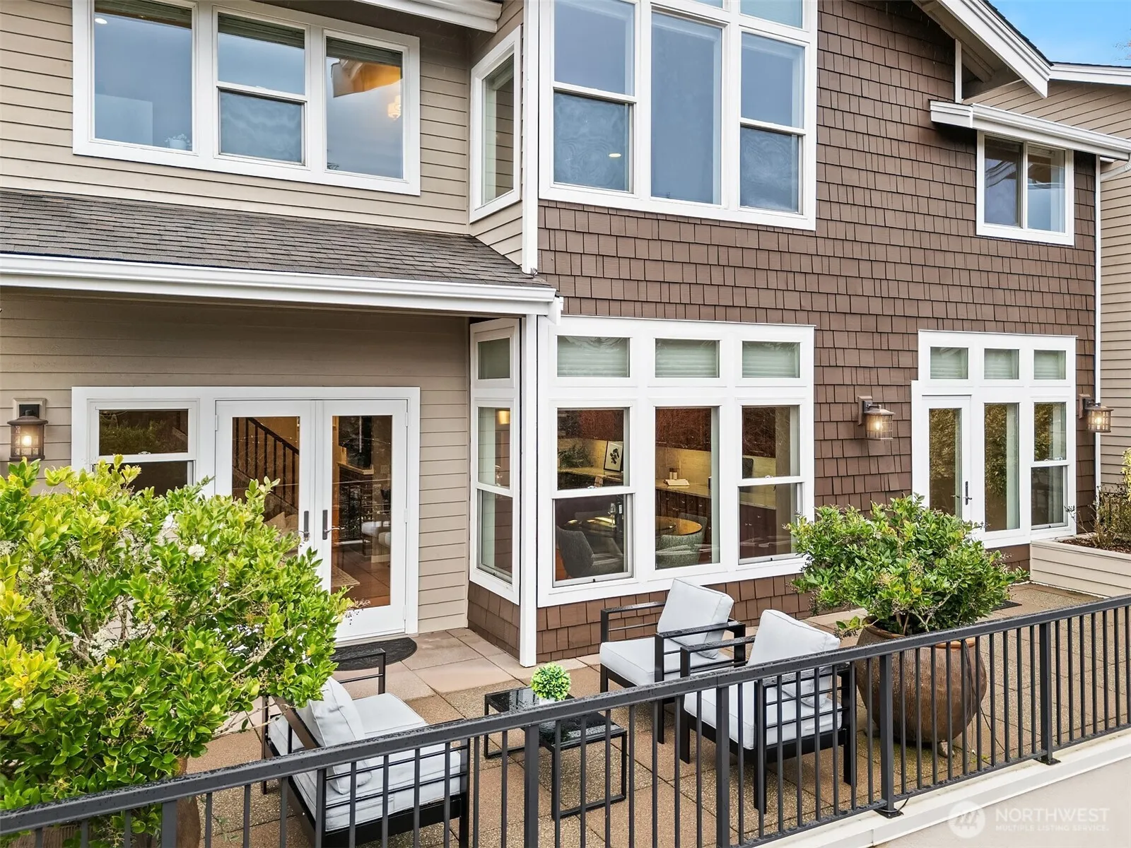 Tucked within an intimate enclave of five residences, end-unit bathed in natural light, this home captures sweeping western views, framing golden sunsets, soaring eagles, and shimmering lake vistas. Refined, high-end finishes, the interiors reflect elegance at every turn. Gleaming cherry cabinetry, expanses of granite countertops and backsplash, and custom built-ins create both beauty and function. Anderson French doors extend living and dining spaces onto a remarkable 200-foot terrace, an entertainer’s dream and the perfect perch for morning coffee or evening gatherings. The vaulted primary suite is a serene retreat with views overlooking Lake Washington and the Olympic mountain range. A peaceful escape with captivating views and a beautifully updated bath featuring marble counters, designer tile, and refined fixtures. All bathrooms have been thoughtfully updated with timeless materials and cohesive style. The lower-level bonus room, with a separate, private entrance complete with built-in speakers, invites versatility as a theater or media room, home office, fitness space, or guest quarters. An oversized two-car garage with a third bay provides exceptional storage and flexibility for watercraft, additional storage, or recreational gear. Directly across from Newport Marina, easy access to Seattle and SeaTac, and located within the award-winning Bellevue School District including Newport High School, this residence delivers a premier, low-maintenance lifestyle. No Rental Cap.