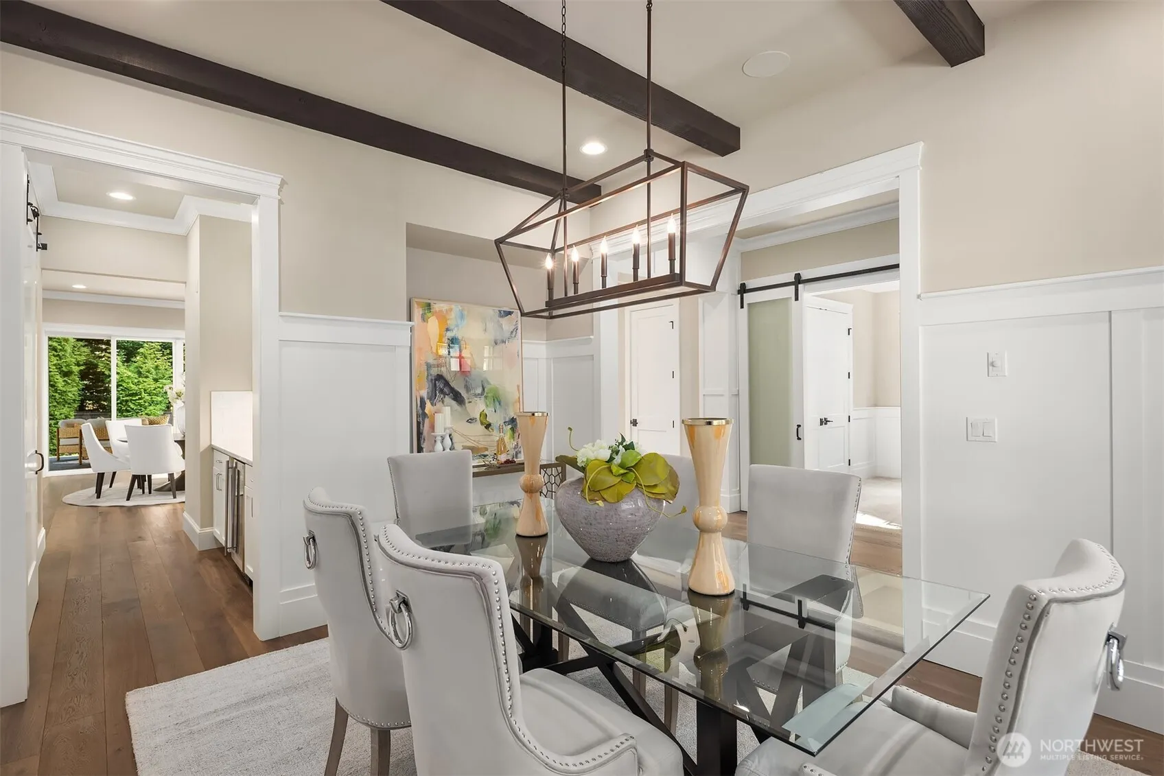 Rare MN Custom Homes resale in sought after quiet neighborhood of Enatai. Minutes from award winning Bellevue schools, world class shopping, waterfront, parks, trails, restaurants, and downtown Bellevue amenities! Main level offers soaring ceilings, banks of windows, light filled rooms, and open chef’s kitchen with expansive slab island warmed by uniquely beautiful veins, large main floor guest suite, dining room with distinctive ceiling beams, and refined home office featuring double glass paneled sliding barn doors. Upper level offers a spacious primary suite with luxurious 5 piece bath spa, heated floors, and enviable closet, plus 3 generously sized bedrooms, sprawling bonus/media room, and convenient upper laundry room. The expansive flat yard and private covered patio with built-in heat & fireplace offer inviting outdoor living. This is a must see to appreciate all that is in this home!