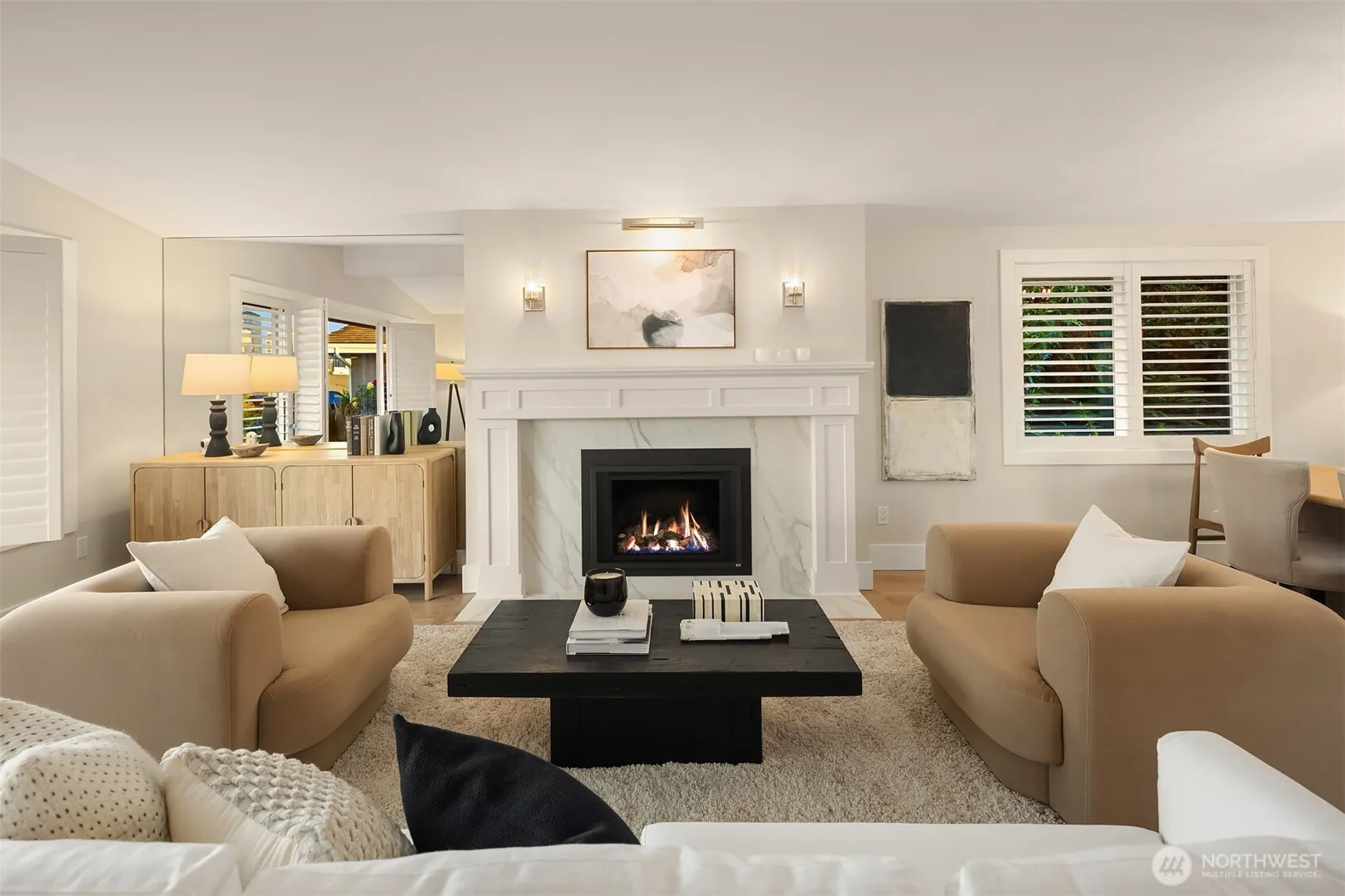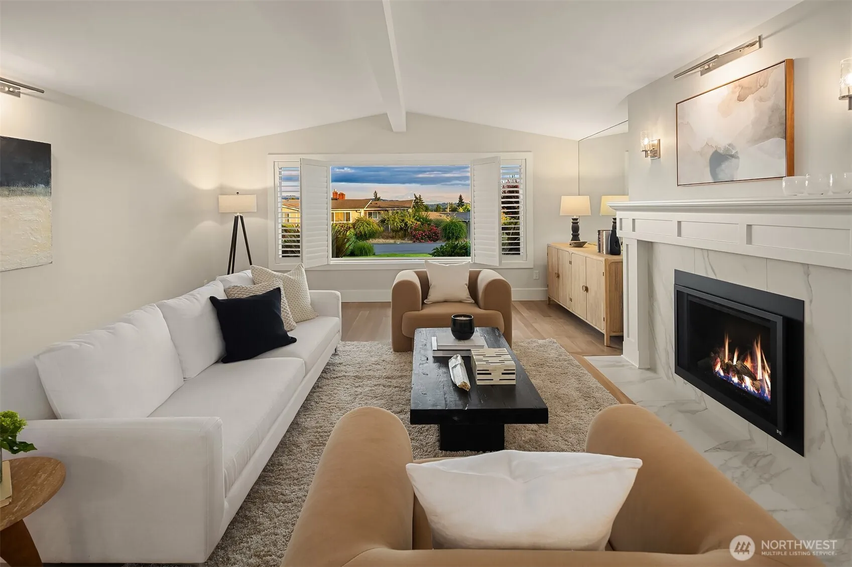 Welcome to this extensively remodeled and fully permitted (2024) single-level estate perched atop a 140 ft deep, quarter-acre, surveyed view lot in coveted Vuecrest with buried utilities and protected views. Showcasing almost 1 million in curated enhancements, this residence masterfully blends modern refinement with timeless architectural elegance. Wide-plank white oak floors, museum-quality gallery walls, designer finishes…every detail has been carefully crafted for maximum comfort & style. The showpiece kitchen is appointed with new Wolf dual ovens, a 48-inch Sub-Zero fridge, Miele dishwasher, custom cabinetry, and exquisite stone surfaces—designed for both entertaining and everyday ease. Striking stone fireplaces anchor the living spaces, and the private primary offers a serene retreat with a beautiful marble bath and tailored walk-in closet. Additional highlights include updated systems, central A/C, a new sewer line, and 2 car garage with EV charging. Walls of glass and French doors create seamless indoor-outdoor flow, opening to an expansive entertainer’s courtyard, capturing breathtaking Mt. Rainier and city skyline views. Professionally landscaped grounds and a fully fenced yard provide privacy and serenity, forming a peaceful sanctuary just steps from Bellevue Square and vibrant dining, shopping, parks, amenities, and top schools. A rare opportunity to own a fully transformed, all one-level, turnkey view property in one of Bellevue’s most sought-after neighborhoods.