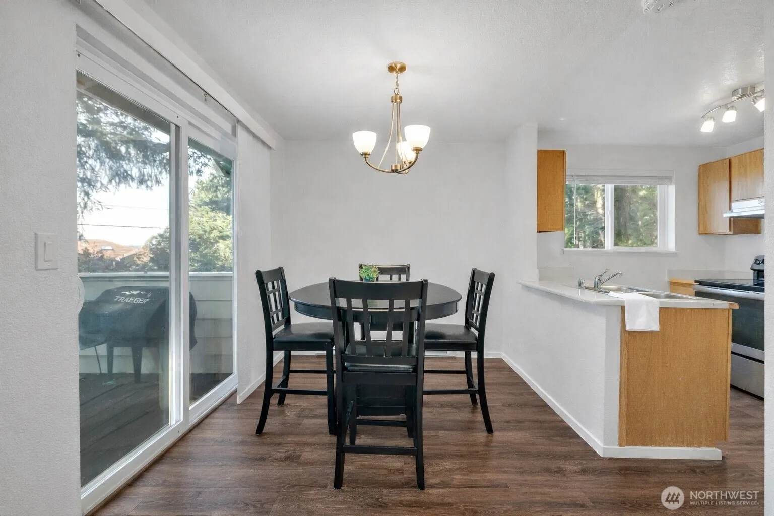 LOCATION, LOCATION, LOCATION!! Elevated living in the heart of University Place! This top-floor, quiet corner-unit condo offers 2 bedrooms, 2 baths, and 2 parking spaces (1-car garage + additional reserved space). Vaulted ceilings and abundant natural light create a bright, open feel, overlooking trees that enhance the peaceful setting and mountain views. Renovated in 2019 with updated flooring, fresh paint, lighting, appliances, and a remodeled bath. Recent exterior updates include new paint, roof (2023), and double-pane windows for improved efficiency and noise reduction. The open-concept layout features a stainless steel kitchen (refrigerator included) flowing into the living and dining area with a cozy wood-burning fireplace. Enjoy your private deck—perfect for relaxing or entertaining while taking in scenic surroundings. Single-level living with both bedrooms and baths on the main floor, plus in-unit laundry with washer/dryer included. Parking includes one space in a common garage and one uncovered space. HOA covers water, sewer, garbage, and common area maintenance for low-maintenance living. Located less than 5 minutes to Chambers Bay Golf Course & Park with waterfront trails, playgrounds, picnic areas, and stunning views. Close to dining, shopping, top-rated University Place schools, Tacoma, and JBLM—an exceptional opportunity!