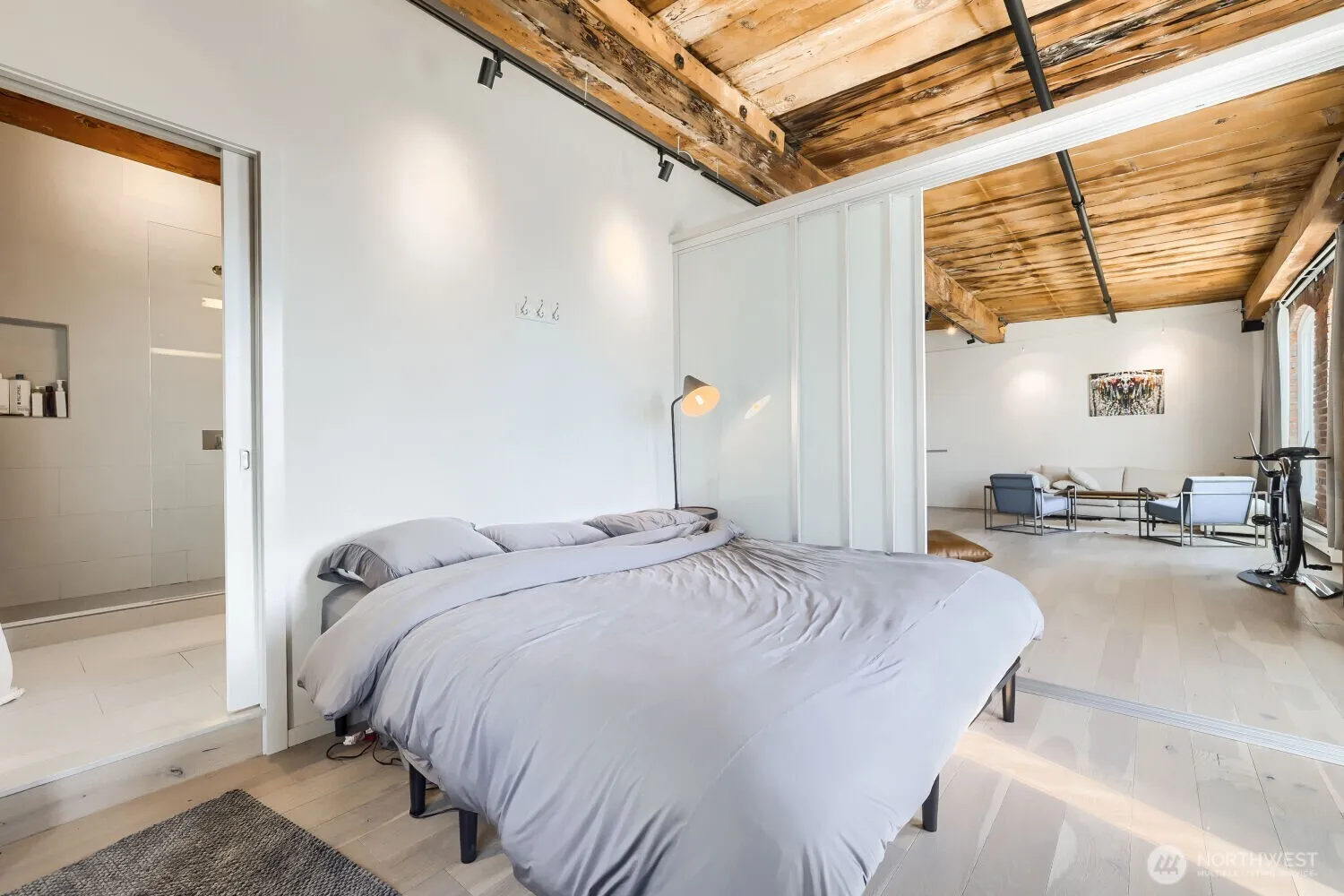 A true top floor loft in the historic Fix/Madore building just in front of Pike Place Market with amazing west-facing views over the Sound. This corner unit blends historic features like exposed brick, original wood beams, and a stunning remodel of the kitchen, bathroom, and more. There’s an in-unit washer/dryer, lots of built-ins, and a storage locker. The famous Zig-Zag cocktail bar is only an elevator ride down to the second floor and you have a front-row location to a billion-dollar waterfront transformation. Visit Pike’s Place Market across the street with an elevator across the street each day for the freshest ingredients to make meals and decorate your home with fresh flowers.